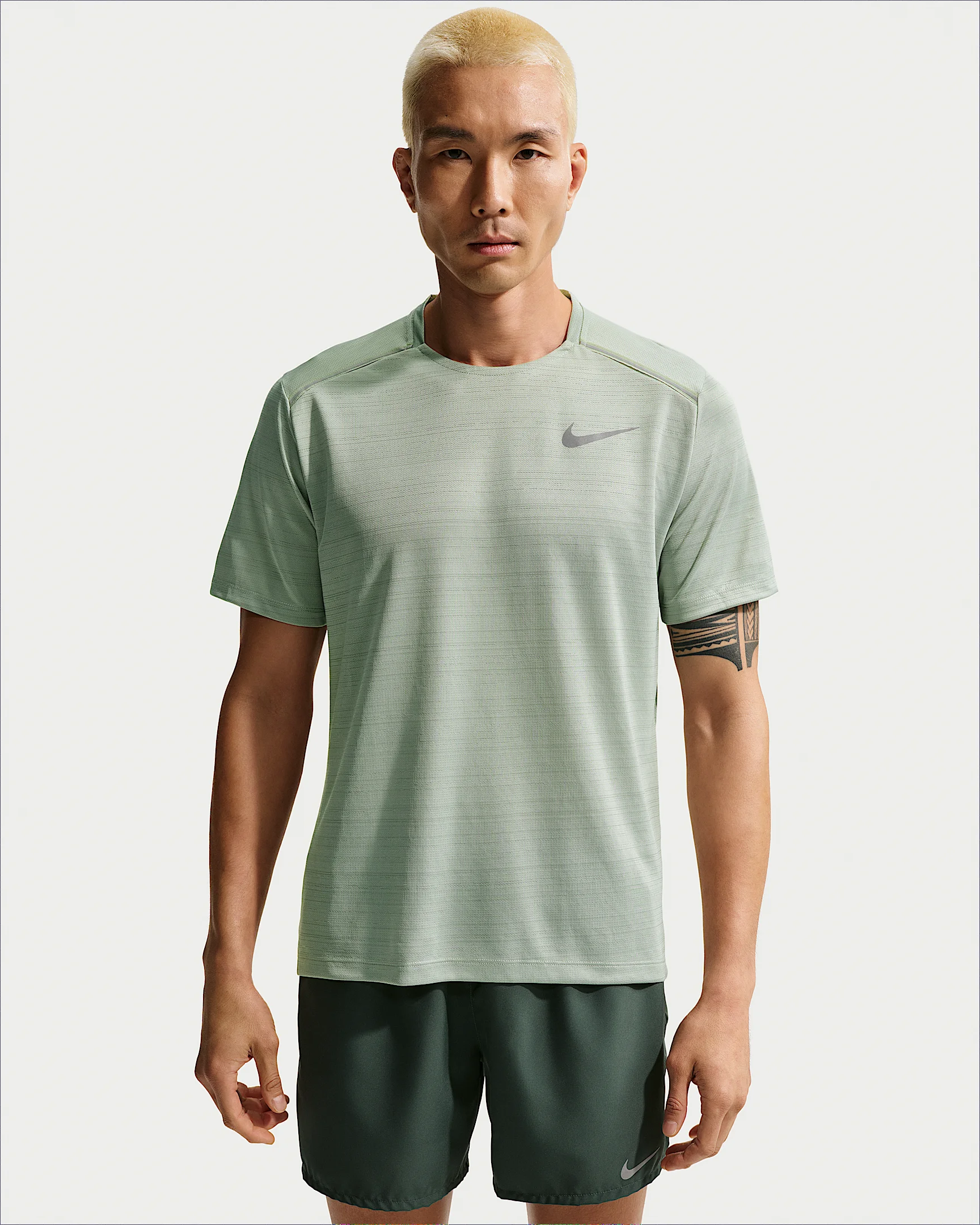 The Nike Dri-FIT Miler Men's Running Top helps keep you comfortable in sweat-wicking, breathable fabric. The back mesh panel provides targeted ventilation. Benefits - Nike Breathe fabric helps you stay dry and cool. - Dri-FIT technology helps you stay dry, comfortable and focused. - Mesh panel enhances breathability. - Standard fit follows the shape of your body. - Dropped back hem helps keep you covered as you move. Product Details - Reflective details - Fabric: 100% polyester - Machine wash - Imported - Not intended for use as Personal Protective Equipment - Shown: Jade Horizon - Style: AJ7565-372 SIZE & FIT Model is wearing size M and is 6′1″185cm Standard fit: easy and traditional