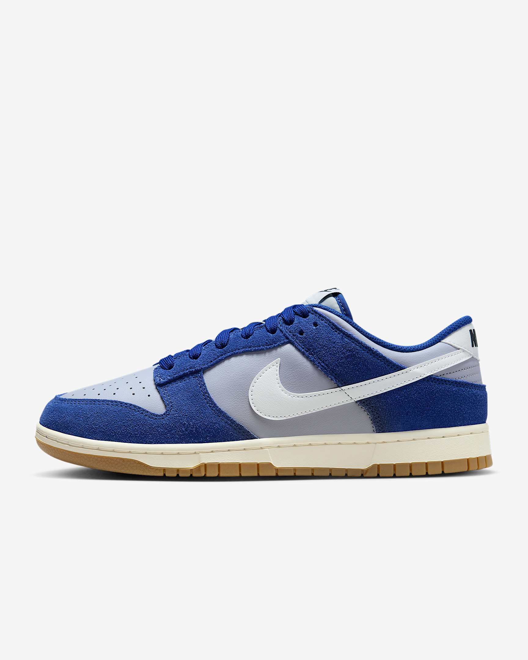You can always count on a classic. The Dunk Low pairs iconic color blocking with premium materials and plush padding for game-changing comfort that lasts. The styling possibilities are endless—how will you wear your Dunks? Benefits - Upper softens and gains vintage character with wear. - Foam midsole offers lightweight, responsive cushioning. - Rubber outsole with classic pivot circle adds durable traction and heritage style. Product Details - Low-cut collar - Foam midsole - Rubber outsole - Shown: Wolf Grey/Deep Royal Blue/Sail/White - Style: IB6399-003