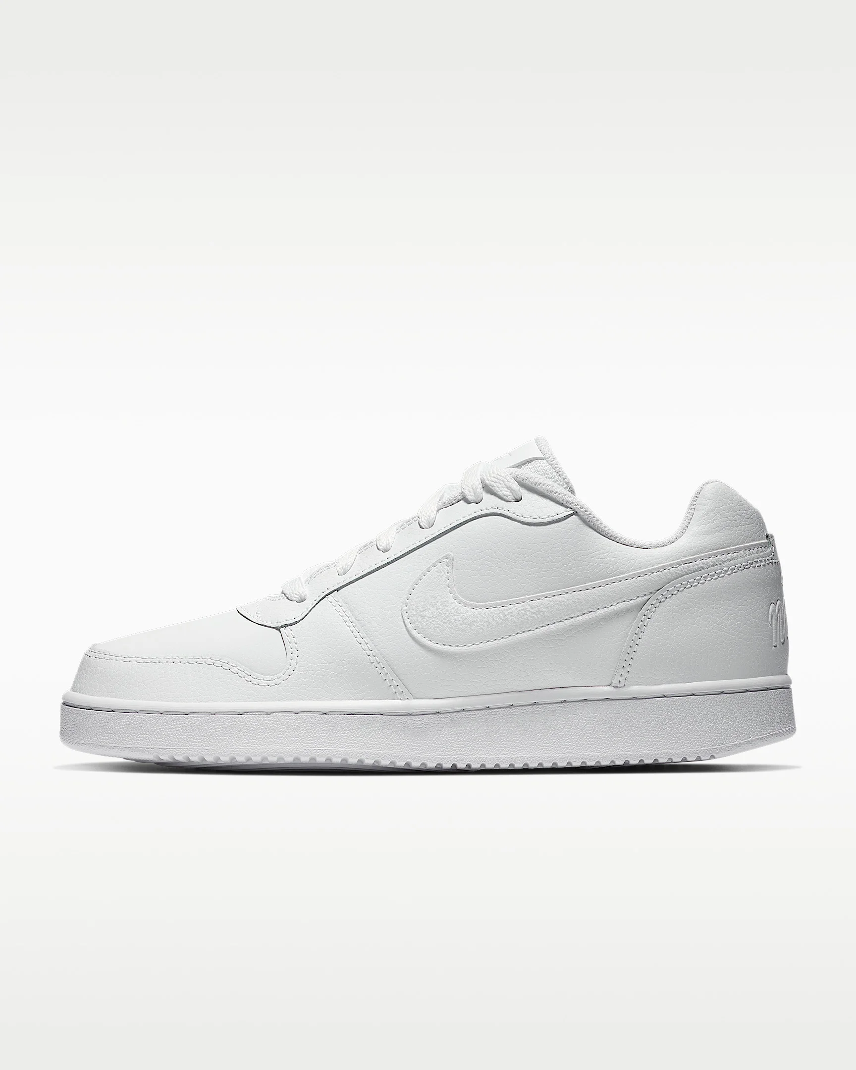 Capturing the look and feel of classic '80s basketball styles, the Nike Ebernon Low features a sleek cupsole design that delivers durable traction. Stitching on the vamp and quarter panels echoes the look of retro hoops sneakers for unmistakable court style. Benefits - Genuine leather in the upper adds durability. - Design lines mimic classic Nike basketball styles from the '80s. - Rubber cupsole provides durability and a classic look. - Low-cut silhouette delivers a low-to-the-ground feel. Product Details - Shown: White/White - Style: AQ1779-100