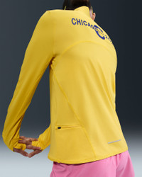 Rep the Bank of America Chicago Marathon in this sweat-wicking running top. Unbelievably soft, lightweight fabric has plenty of stretch and UV blocking tech to keep you covered as you push toward the finish line. Benefits - Nike Dri-FIT technology moves sweat away from your skin for quicker evaporation, helping you stay dry and comfortable. - Zip pocket on left hip holds your essentials. - Thumbholes let you extend your coverage and help hold the sleeves in place as you run. Product Details - Reflective Swoosh logo - Not intended for use as Personal Protective Equipment (PPE) - This product provides UVA and UVB protection from the sun only in the areas covered by the garment. To protect exposed areas, the use of good quality sunscreen is recommended. - 88% polyester/12% spandex - Machine wash - Imported - Shown: Lightning/Deep Night - Style: HQ4311-718 SIZE & FIT Model is wearing size S and is 5′10″178cm Standard fit: easy and traditional