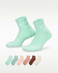 The Nike Everyday Plus Cushioned Socks bring comfort to your workout with extra cushioning under the heel and forefoot and a snug, supportive arch band. Sweat-wicking power and breathability up top help keep your feet dry and cool to help push you through that extra set. Benefits - Cushioning under the forefoot and heel helps soften the impact of your workout. - Dri-FIT technology helps your feet stay dry and comfortable. - Band around the arch feels snug and supportive. - Breathable knit pattern on top adds ventilation. - Reinforced heel and toe are made to last. Product Details - Fabric (heather): 62% cotton/35% polyester/2% spandex/1% nylon - Fabric (solid): 68% cotton/29% polyester/2% spandex/1% nylon - Machine wash - Imported - Shown: Multi-Color - Style: SX6899-971