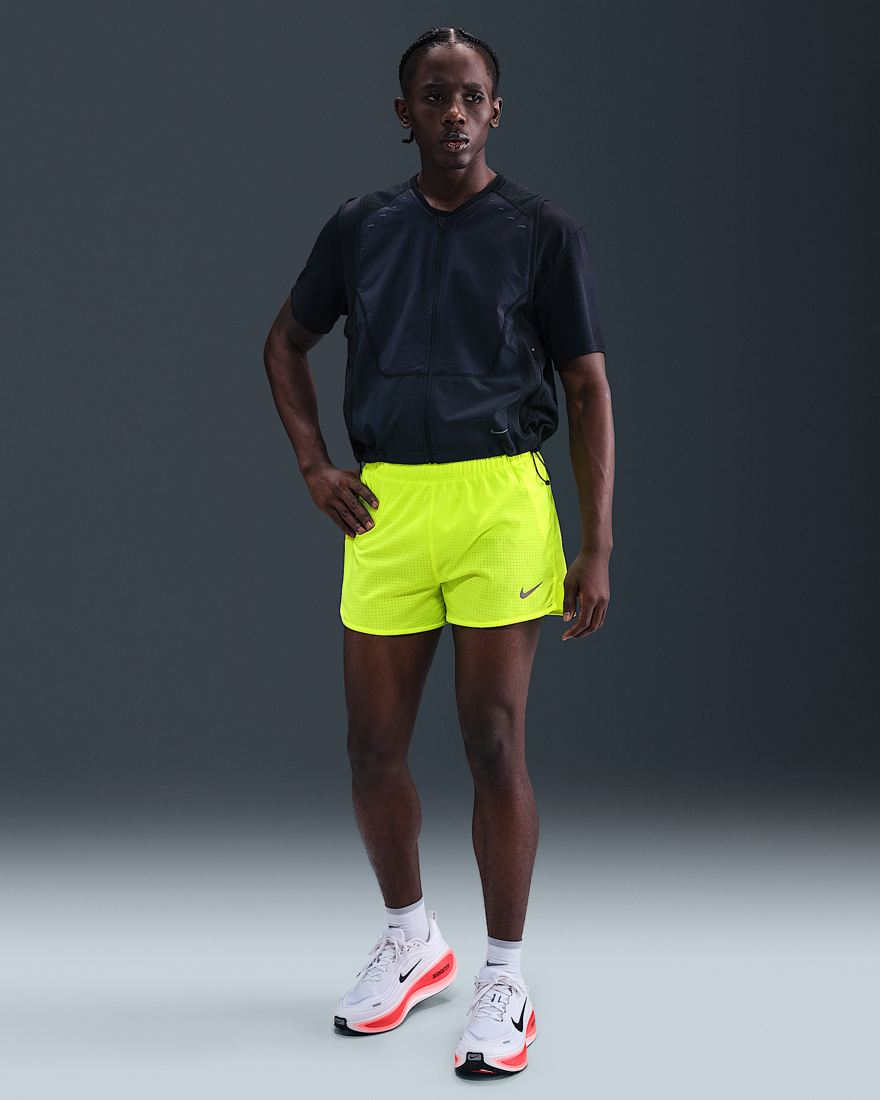 Designed for racing, the Nike Fast shorts bring breathability and support to help you move comfortably through every stride. A simple lightweight design and 2 drop-in pockets let you get the most out of your run. More Benefits - Designed for Racing - Length: 3" - Liner: Knit liner - Fabric: Lightweight woven - Storage: 2 internal drop-in pockets - Waistband: Elastic with drawcord Product Details - Side vents - Reflective Swoosh logo - Body: 100% polyester. Lining: 92% polyester/8% spandex - Machine wash - Imported - Not intended for use as Personal Protective Equipment (PPE) - Shown: Volt/Black - Style: FN3355-702 SIZE & FIT Model is wearing size M and is 6′1″185cm Standard fit: easy and traditional