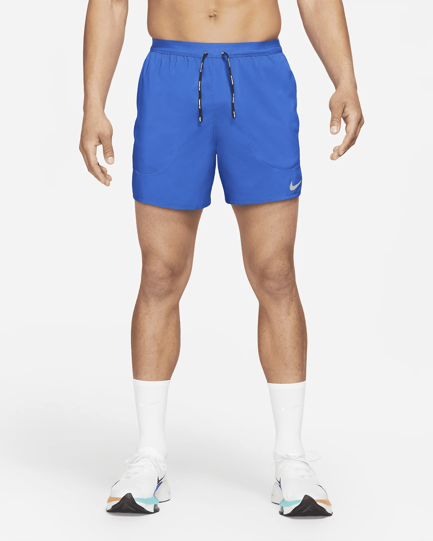 The Nike Flex Stride Shorts have an all-new woven fabric and enhanced breathability in high-sweat areas. Their soft brief liner provides secure support where you need it most. Convenient pockets stash items on the run. This product is made with at least 50% recycled polyester fibers. More Benefits - Breathable fabric helps you stay dry and cool. - Dri-FIT technology helps you stay dry, comfortable and focused. - Nike Flex fabric stretches with your body. Product Details - Standard fit for a relaxed, easy feel - 5" inseam with knit brief liner - Reflective elements at the side hems - Reflective Swoosh at the left leg and reflective bars - Heathered Colors: Body: 100% polyester. Panels: 94% polyester/6% spandex. Waistband: 66% nylon/34% spandex. Lining: 89% recycled polyester/11% spandex. Side pockets: 100% recycled polyester. - Solid Colors: Body: 100% recycled polyester. Panels: 94% polyester/6% spandex. Waistband: 66% nylon/34% spandex. Lining: 89% recycled polyester/11% spandex. - Machine wash - Imported - Not intended for use as Personal Protective Equipment - Shown: Game Royal - Style: CJ5453-480 SIZE & FIT Model is wearing size M and is 6'0"183cm Big & Tall model is wearing size 2XL and is 6'5"196cm Standard fit: easy and traditional