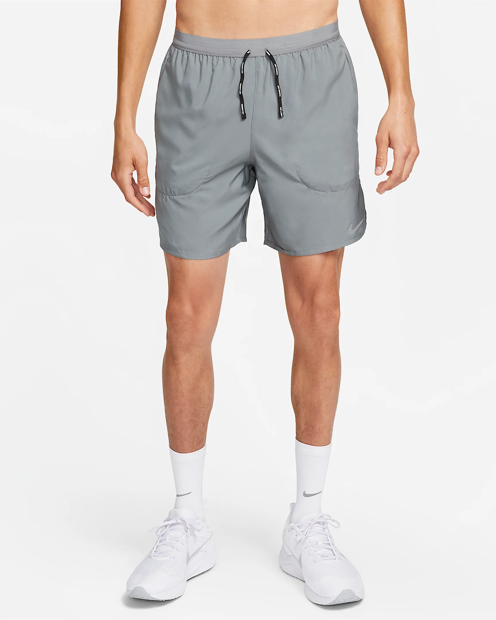 The Nike Flex Stride Shorts are updated with an all-new woven fabric and enhanced breathability in high-sweat areas. Their soft brief liner provides secure support where you need it. This product is made with at least 50% recycled polyester fibers. More Benefits - Nike Flex fabric stretches with your body. - Dri-FIT technology helps you stay dry and comfortable. Product Details - Standard fit for a relaxed, easy feel - Knit liner - Reflective elements at the side hems and reflective Swoosh at the left leg - Body: 100% polyester; Panels: 94% polyester, 6% spandex; Waistband: 66% nylon, 34% spandex; Lining: 89% recycled polyester, 11% spandex. - Machine wash - Imported - Not intended for use as Personal Protective Equipment (PPE) - Shown: Smoke Grey/Smoke Grey - Style: CJ5459-085 SIZE & FIT Model is wearing size M and is 5′11″180cm Standard fit: easy and traditional