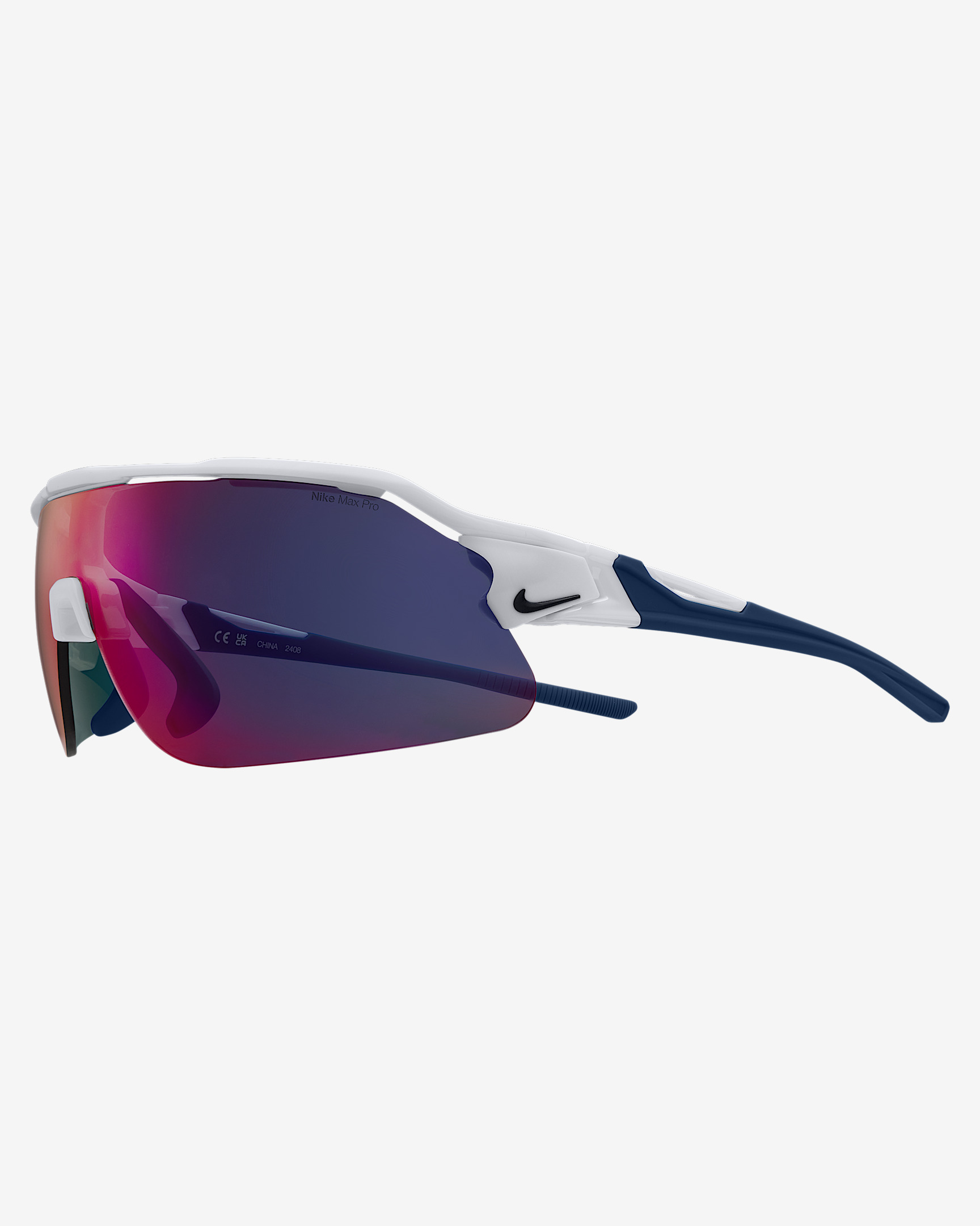 Never let a new environment change how you choose to sport. Introducing the latest edition of the Nike Flyfree stripped down for pure performance. The Nike Flyfree Shield offers a panoramic, single-lens design with the same interchangeable lens options to enhance performance in any environment. The adjustable nose pads and temples are made to provide constant comfort and support. Benefits - Frame size: 72mm lens width; 5mm bridge width; 130mm temple length - Nike Field Tint mutes bright light while enhancing your ability to track objects - Nike Max Pro helps reduce light reflection while repelling water and oil for a clearer view of what's ahead. - 6-base curved lens offers medium coverage with moderate peripheral light blockage - Adjustable nose pads and temples with silicone sleeves provide enhanced grip and optimal fit. Product Details - Injected frame material is derived from at least 40% castor bean oil - Includes extra interchangeable lens - 100% UVA/UVB protection - Shown: White - Style: NKIF1107-101