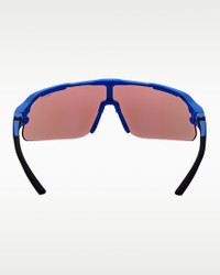Never let a new environment change how you choose to sport. Introducing the latest edition of the Nike Flyfree stripped down for pure performance. The Nike Flyfree Shield offers a panoramic, single-lens design with the same interchangeable lens options to enhance performance in any environment. The adjustable nose pads and temples are made to provide constant comfort and support. Benefits - Frame size: 72mm lens width; 5mm bridge width; 130mm temple length - Nike Road Tint blocks harsh light on the track and road - Nike Max Pro helps reduce light reflection while repelling water and oil for a clearer view of what's ahead. - 6-base curved lens offers medium coverage with moderate peripheral light blockage - Adjustable nose pads and temples with silicone sleeves provide enhanced grip and optimal fit. Product Details - Injected frame material is derived from at least 40% castor bean oil - Includes extra interchangeable lens - 100% UVA/UVB protection - Shown: Game Royal - Style: NKIF1107-480