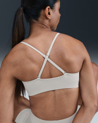Show off your form—not your sweat. Designed with Stealth Evaporation technology, this triangle bra conceals moisture to help you stay looking fresh. Midweight, ultrasoft fabric offers smooth coverage, while light support gives you a gentle hold with plenty of freedom. Product Details - Silicone Swoosh logo on left chest - Body/Lining: 76% polyester/24% spandex - Machine wash - Imported - Shown: Light Orewood Brown/Light Iron Ore - Style: HQ7003-104 SIZE & FIT Model is wearing size S Model height: 5′10″178cm Model bust: 31″79cm Tight fit: snug and form-fitting Light support: feels ke a soft hug with plenty of freedom