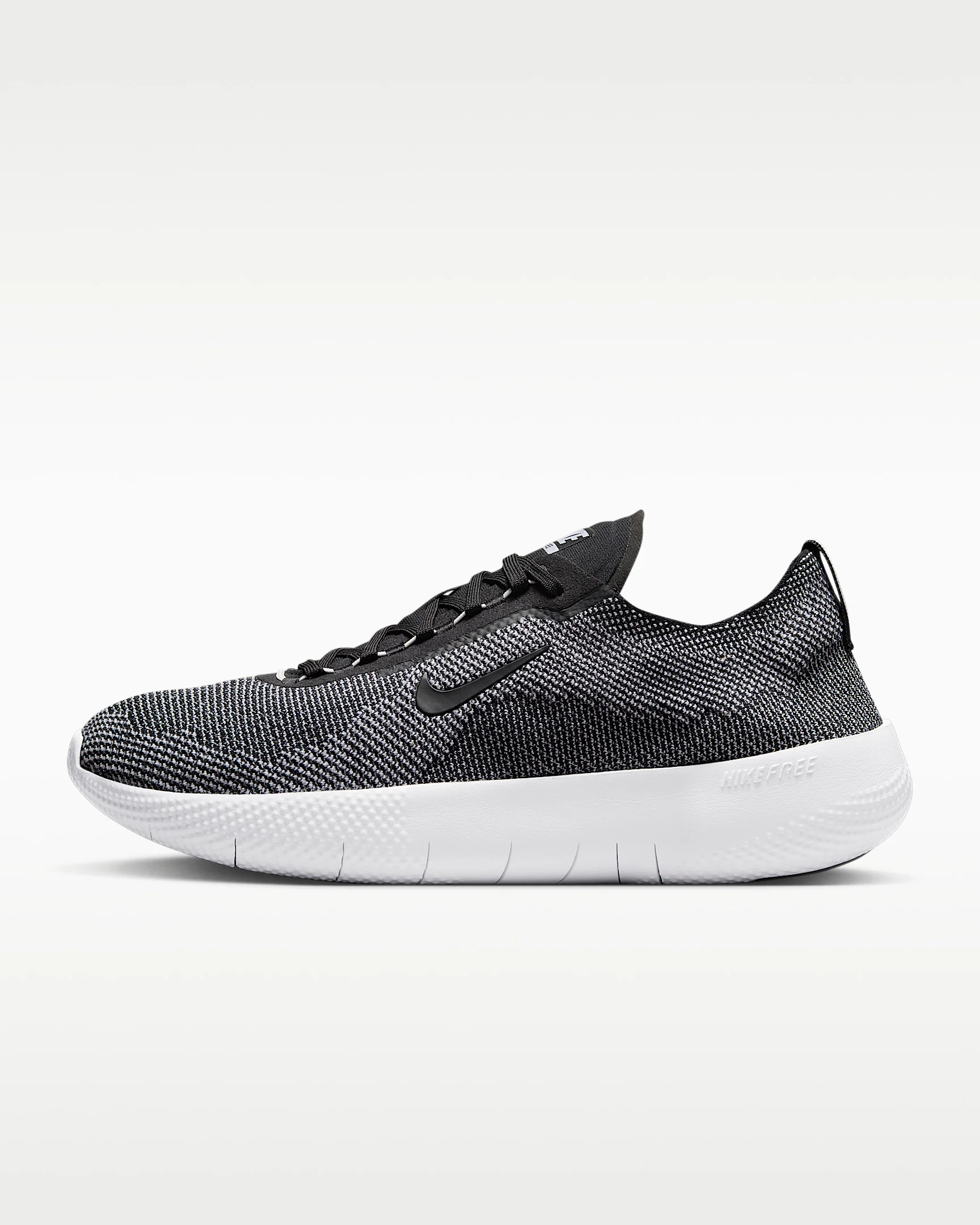 The Nike Free 2025 brings you miles of comfort with Flyknit that delivers even more zoned stretch and breathability than before. The outsole pattern adjusts to your every step for a dynamic ride, top to bottom. Benefits - Flyknit on upper delivers zoned stretch and support. - Grooves on the sole allow for flexibility and let you move freely. - Dual-density midsole provides flexible cushioning. - Dynamic heel feels stretchy for a snug, adaptive fit. - Texture under the toe and heel enhances traction in these high-abrasion zones. Product Details - Shown: Black/Black/White - Style: HF1078-004