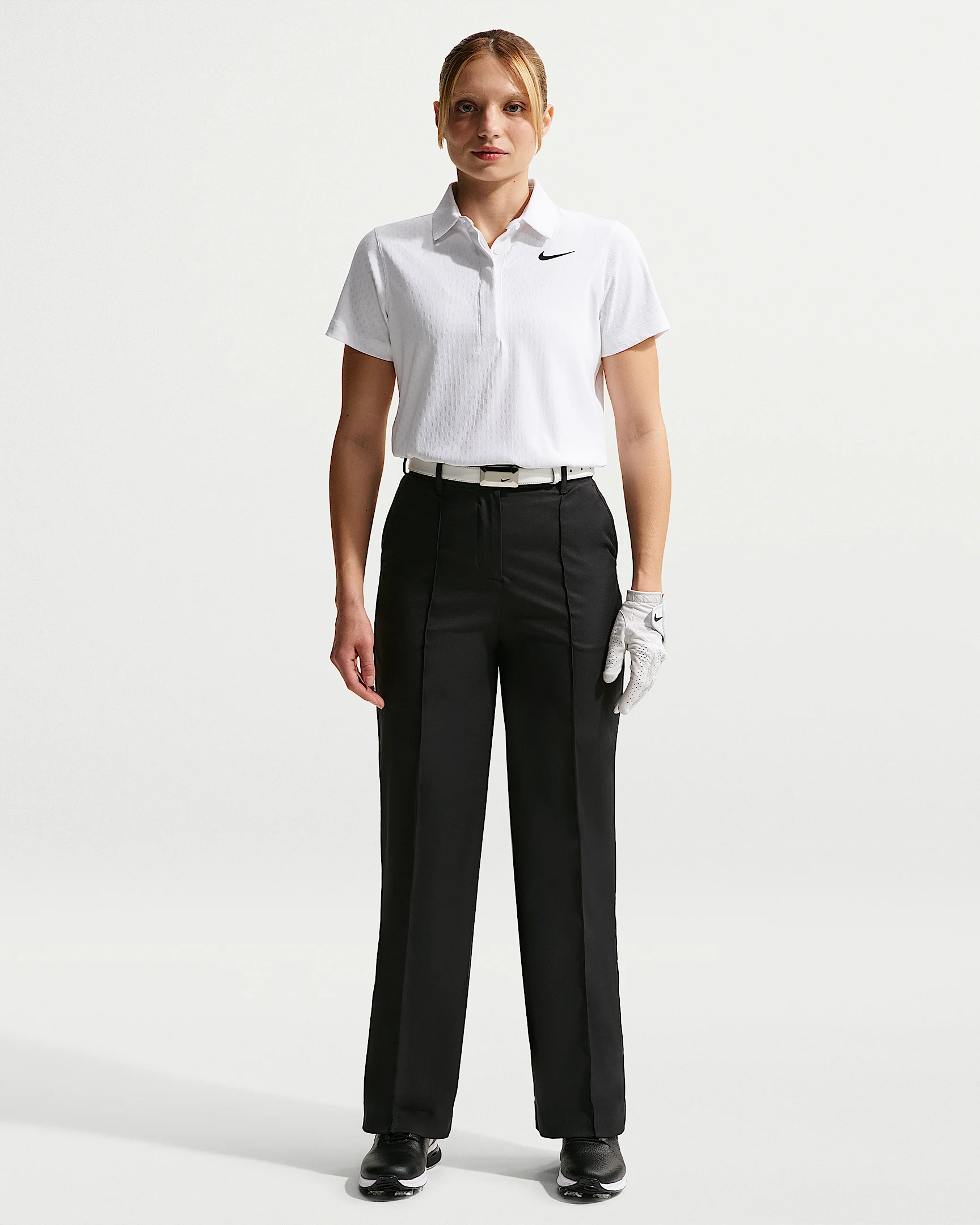 Cut with a straight leg design, these pants use a smooth, sweat-wicking woven fabric to keep you comfortable and dry throughout your round. Loops for your tees and deep pockets keep all the small stuff organized so you can stay focused on your game. Benefits - Nike Dri-FIT technology moves sweat away from your skin for quicker evaporation, helping you stay dry and comfortable. - Specially designed golf tee storage above the side pocket. - Midweight, smooth fabric stretches with every swing and dries quickly. Product Details - Front and back pickets - Mid-rise - Belt loops - Encased elastic waistband - Embroidered Swoosh logo - Silicone Nike Golf branding inside waistband - Body: 92% polyester/8% spandex. Pocket Bags: 100% polyester. - Machine wash - Imported - Shown: Black/Sail - Style: IF5986-010 SIZE & FIT Model is wearing size 2 and is 5′10″178cm Standard fit: easy and traditional Fl length: hits below ankle