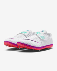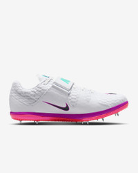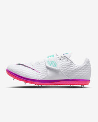 The Nike High Jump Elite gives you the support and stability you need for training and competitions. The plate design gives you the right amount of stiffness for a better push-off. Product Details - World Athletics approved - Cushioned sockliner - Shown: White/Bright Crimson/Hyper Violet/Obsidian - Style: FZ9636-101