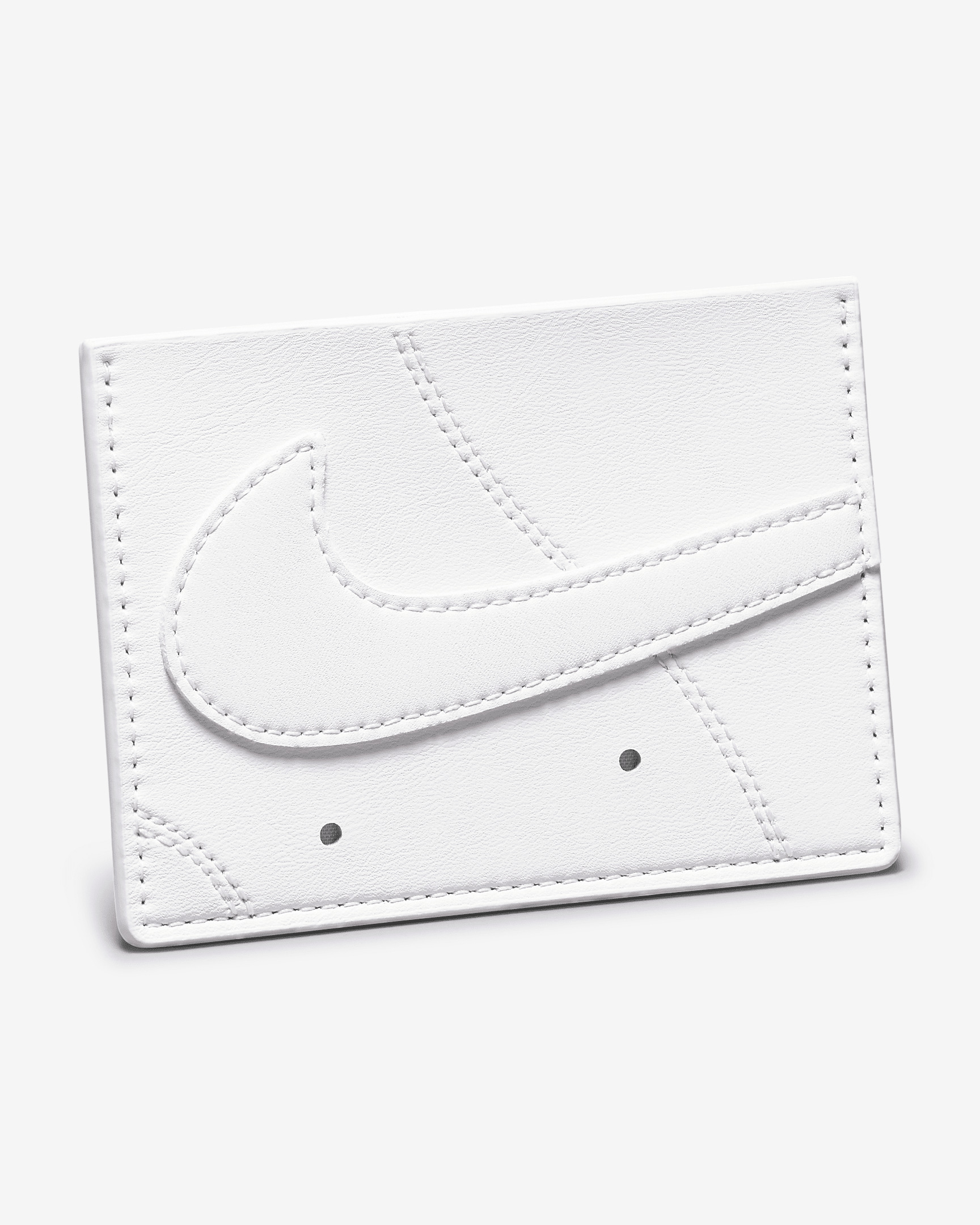 With a design that nods to a shoe that changed sneaker history, this card wallet has a sleeve for storing cash and three slots for cards. Benefits - Includes two sleeves and one slot for storing your cash, cards and IDs Product Details - Body: 60% polyurethane/40% nylon. Lining: 87% polyester/13% EVA. - Sport clean - Imported - Shown: White - Style: N1009738-176