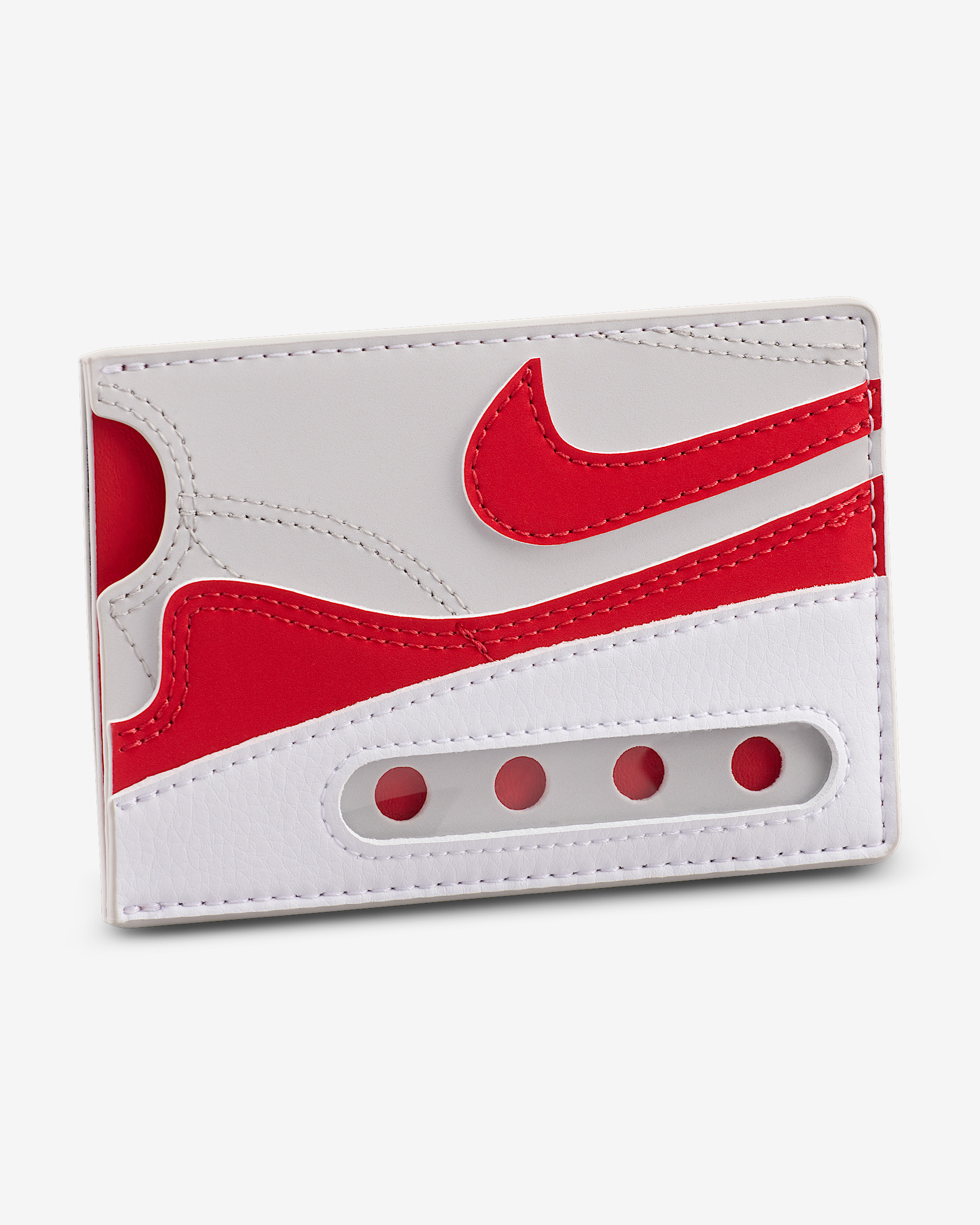 The Nike Icon Air Max Card Wallet is a stylish tribute to the iconic '90s sneaker that helped define sneaker culture. Designed with a sleek, compact profile, it features two sleeves and three slots to securely organize your cash, cards and ID. Made from durable materials, this wallet combines retro-inspired design with practical functionality that's perfect for fans looking to carry their essentials with a touch of sneaker history. Product Details - Body: 60% polyurethane (PU)/40% nylon. Lining: 83% polyester/17% EVA - Spot clean - Imported - Shown: Neutral Grey/White/University Red - Style: N1013668-080