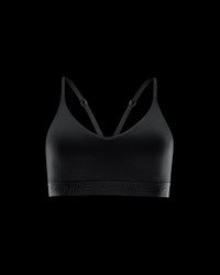 Don't let anything get in the way of expressing yourself in this sleek, low-profile sports bra. Its light support gives you a gentle hold with plenty of freedom that's great for low-impact workouts or all-day comfort. Smooth, quick-drying fabric gives the bra a clean finish so you can wear it your way. More Benefits - Nike Dri-FIT technology moves sweat away from your skin for quicker evaporation, helping you stay dry and comfortable. - Soft jacquard chest band sits snugly against your skin without pinching or binding. Product Details - Body: 78-79% polyester/21-22% spandex. Bottom hem: 53% polyester/28% nylon/19% spandex. Straps: 52% polyester/32% spandex/16% nylon. Lining: 84% polyester/16% spandex. Interlining: 80% polyester/20% spandex. Pad top fabric/Pad back fabric: 100% polyester. Pad: 100% polyurethane. - Machine wash - Imported - Shown: Black/Black/Black - Style: FD1062-010 SIZE & FIT Model is wearing size S Model height: 5′9″175cm Model bust: 31″79cm Tight fit: snug and form-fitting Light support: feels ke a soft hug with plenty of freedom