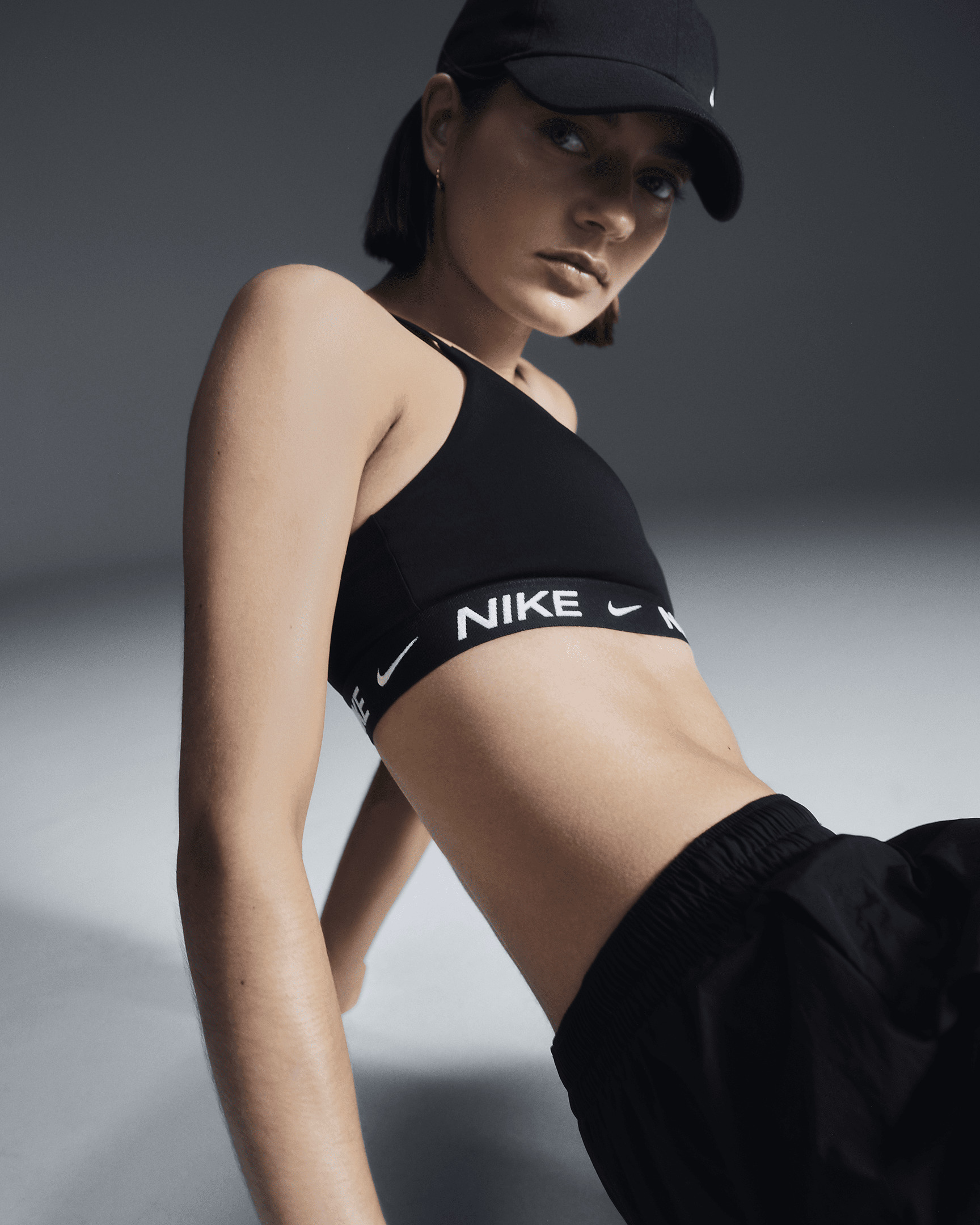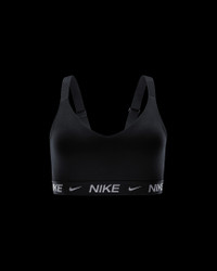 Be unapologetic while you crush your goals in this sleek, secure sports bra. Great for training workouts and dance classes, medium support gives you a snug hold that helps keep everything in place. Smooth, quick-drying fabric gives the bra a clean finish so you can wear it your way. More Benefits - Nike Dri-FIT technology moves sweat away from your skin for quicker evaporation, helping you stay dry and comfortable. - Soft jacquard chest band sits snugly against your skin without pinching or binding. Product Details - Body: 78-79% polyester/21-22% spandex. Bottom hem: 53% polyester/28% nylon/19% spandex. Straps: 73% nylon/27% spandex. Lining: 84% polyester/16% spandex. Interlining: 80% polyester/20% spandex. Pad top fabric/Pad back fabric: 100% polyester. Pad: 100% polyurethane. - Machine wash - Imported - Shown: Black/Black/White - Style: FD1065-011 SIZE & FIT Model is wearing size S Model height: 5′10″178cm Model bust: 31″79cm Tight fit: snug and form-fitting Medium support: feels ke a snug hold to keep everything in place