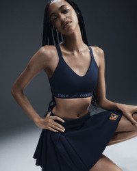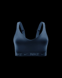 Be unapologetic while you crush your goals in this sleek, secure sports bra. Great for training workouts and dance classes, medium support gives you a snug hold that helps keep everything in place. Smooth, quick-drying fabric gives the bra a clean finish so you can wear it your way. More Benefits - Nike Dri-FIT technology moves sweat away from your skin for quicker evaporation, helping you stay dry and comfortable. - Soft jacquard chest band sits snugly against your skin without pinching or binding. Product Details - Body: 78-79% polyester/21-22% spandex. Bottom hem: 53% polyester/28% nylon/19% spandex. Straps: 73% nylon/27% spandex. Lining: 84% polyester/16% spandex. Interlining: 80% polyester/20% spandex. Pad top fabric/Pad back fabric: 100% polyester. Pad: 100% polyurethane. - Machine wash - Imported - Shown: Armory Navy - Style: FD1065-478 SIZE & FIT Model is wearing size S Model height: 5′10″178cm Model bust: 32″81cm Tight fit: snug and form-fitting Medium support: feels ke a snug hold to keep everything in place