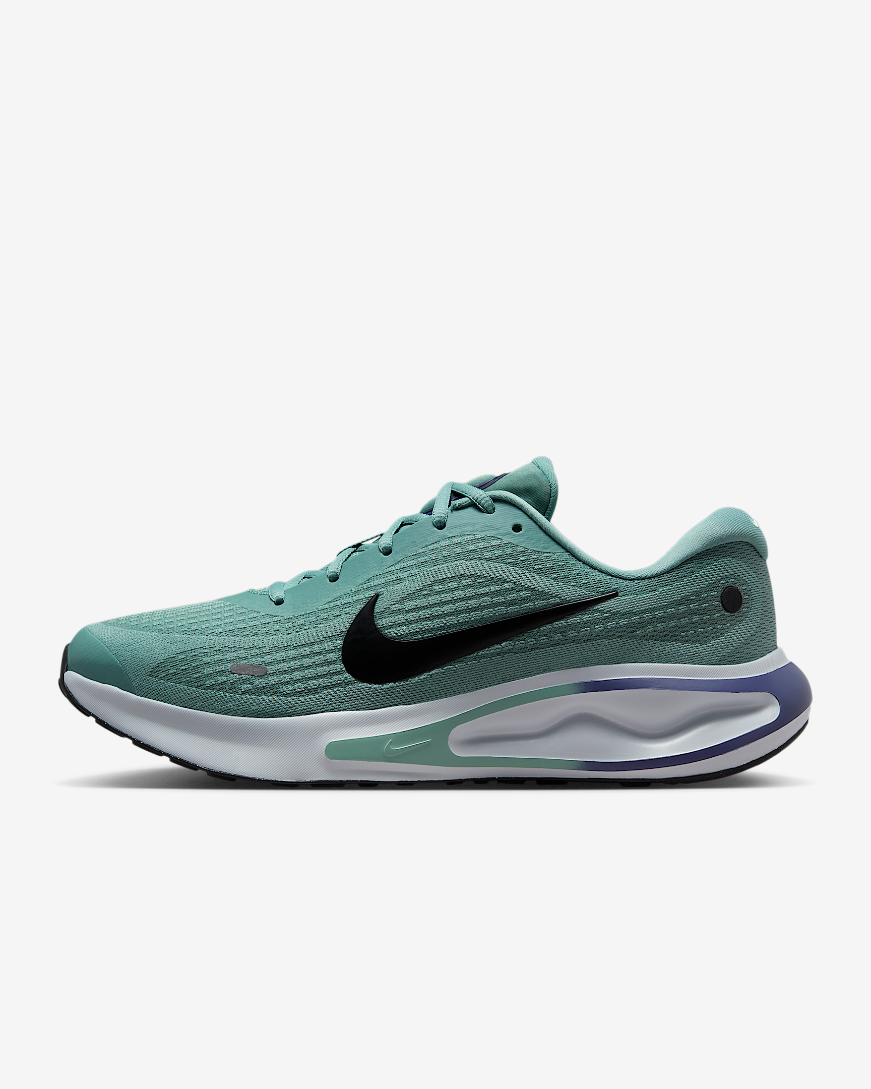 Enjoy every step, route and jaunt in the Nike Journey Run. It’ll have you striding and smiling on punishing pavements, thanks to an extra-high foam stack and supersoft ComfiRide cushioning. It's so comfortable that you'll already be looking forward to lacing 'em up again. Product Details - Reflective details - Not intended for use as Personal Protective Equipment (PPE) - Shown: Cannon/Sanded Purple/Pure Platinum/Black - Style: FN0228-010