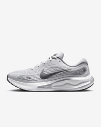Enjoy every step, route and jaunt in the Nike Journey Run. It’ll have you striding and smiling on punishing pavements, thanks to an extra-high foam stack and supersoft ComfiRide cushioning. It's so comfortable that you'll already be looking forward to lacing 'em up again. Benefits - Engineered mesh helps your feet feel secure. - Extra cushioning in the heel and soft touch points in the tongue and collar add comfort. - Rubber outsole provides traction for your miles. Product Details - Reflective details - Not intended for use as Personal Protective Equipment (PPE) - Shown: White/Black/Ashen Slate/Metallic Silver - Style: FN0228-104