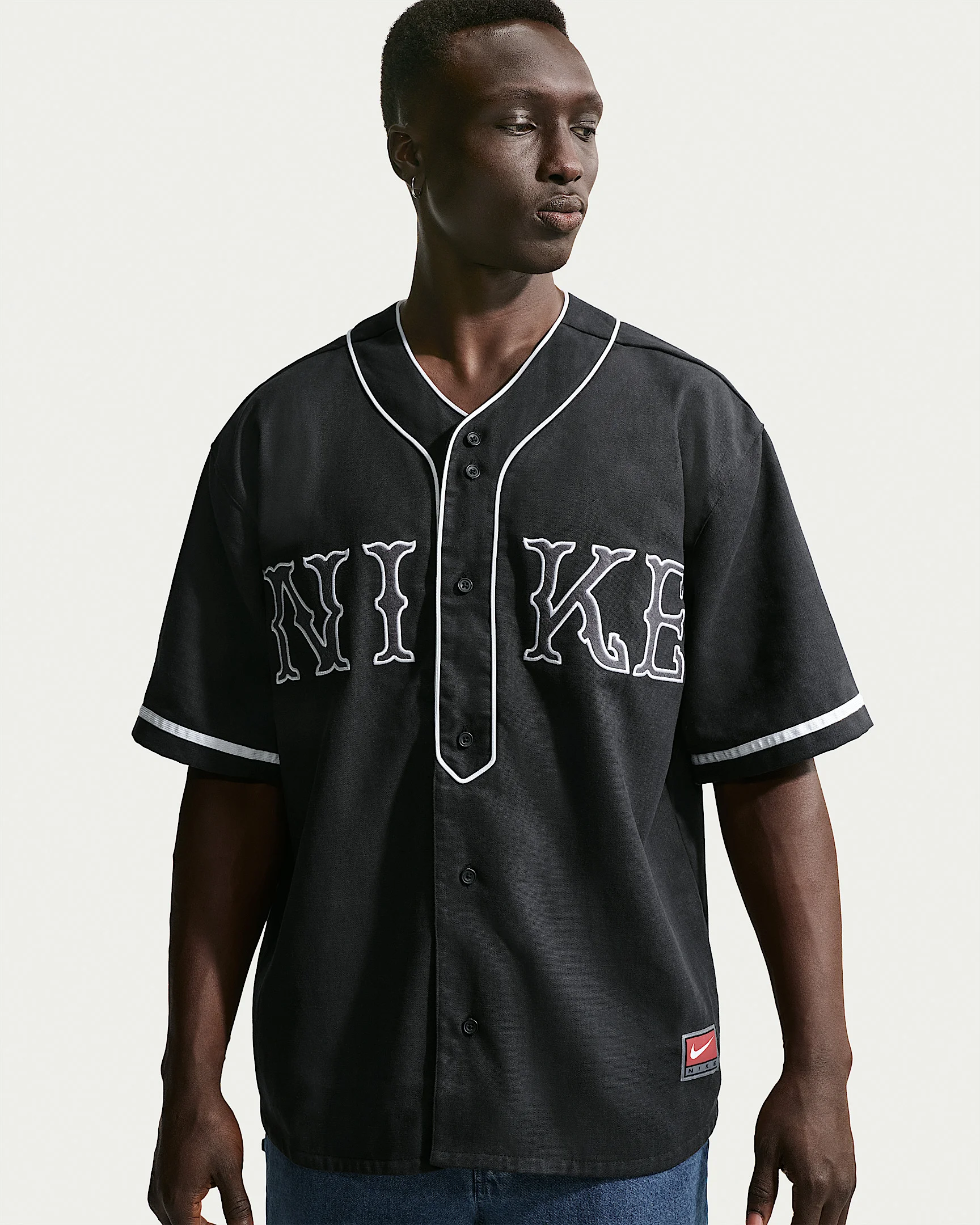 Nike Life is your uniform for the daily grind. Built to be durable and versatile, it's a fresh take on iconic menswear. Our version of a sport-inspired jersey is crafted with a heavyweight, structured woven hemp blend. It's extra roomy with dropped shoulders for a modern fit. Product Details - Felt letter patches - Nike Life jock tag - 55% hemp/45% polyester. - Machine wash - Imported - Shown: Black/White/White - Style: IF2229-010 SIZE & FIT Model is wearing size M and is 6′0″183cm Oversized fit: exaggerated and spacious
