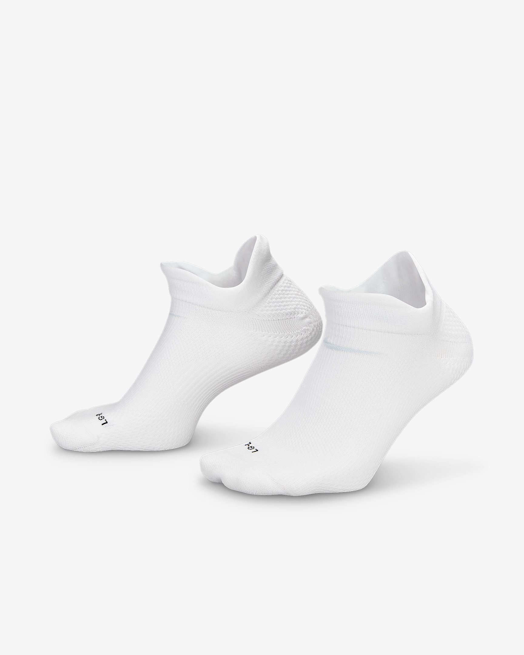 Introducing Nike's newest running socks. Designed to give you a locked-in fit, they feature advanced sweat-wicking technology and strategically placed cushioning and support. This means you can forget the fit and focus on your miles. Plus, there are no tails on the inside, helping to ensure you can run with zero distractions. Product Details - 50% nylon/46% polyester/4% spandex - Machine wash - Imported - Shown: White/Black/Pure Platinum - Style: HV6931-100