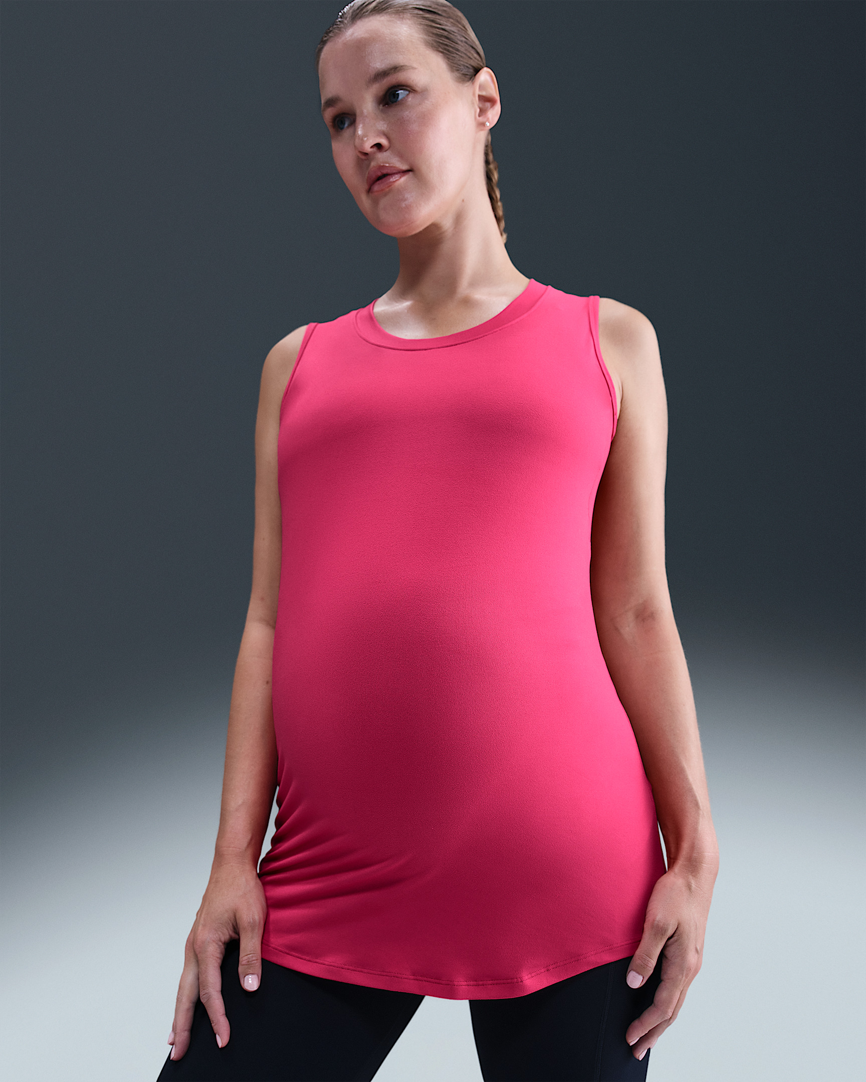 From bump to beyond, this sleek, sweat-wicking tank is ready for whatever you are. Unbelievably soft, lightweight fabric has plenty of stretch but recovers its shape for comfort well past the third (or let's be real, the fourth) trimester. Benefits - Nike Dri-FIT technology moves sweat away from your skin for quicker evaporation, helping you stay dry and comfortable. - Scoop neck pulls down for easy nursing access. Product Details - 88% polyester/12% spandex - Machine wash - Imported - Reflective elements - Not intended for use as Personal Protective Equipment (PPE) - Shown: Rush Pink - Style: FN4996-666 SIZE & FIT Sm fit: sleek and tailored