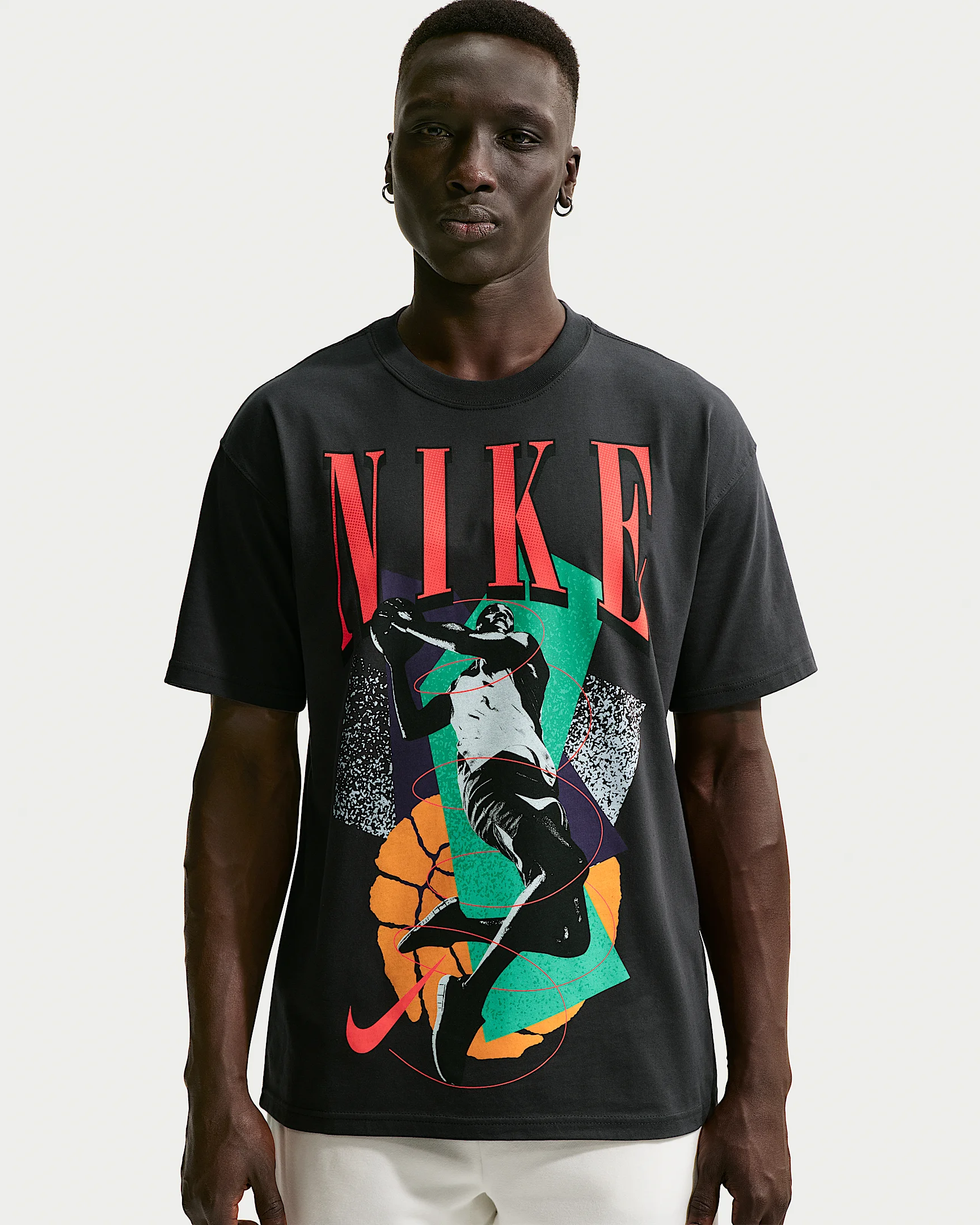 Level up your ability in this high-flying soft cotton graphic t-shirt. It comes with a slight drape for shooting sessions or off-court style. Benefits - Midweight cotton fabric feels soft and has a slight drape. Product Details - Loose fit - Ribbed collar - 100% cotton - Machine wash - Imported - Shown: Off Noir - Style: IH4131-010 SIZE & FIT Model is wearing size M and is 6′0″183cm Loose fit: roomy and relaxed