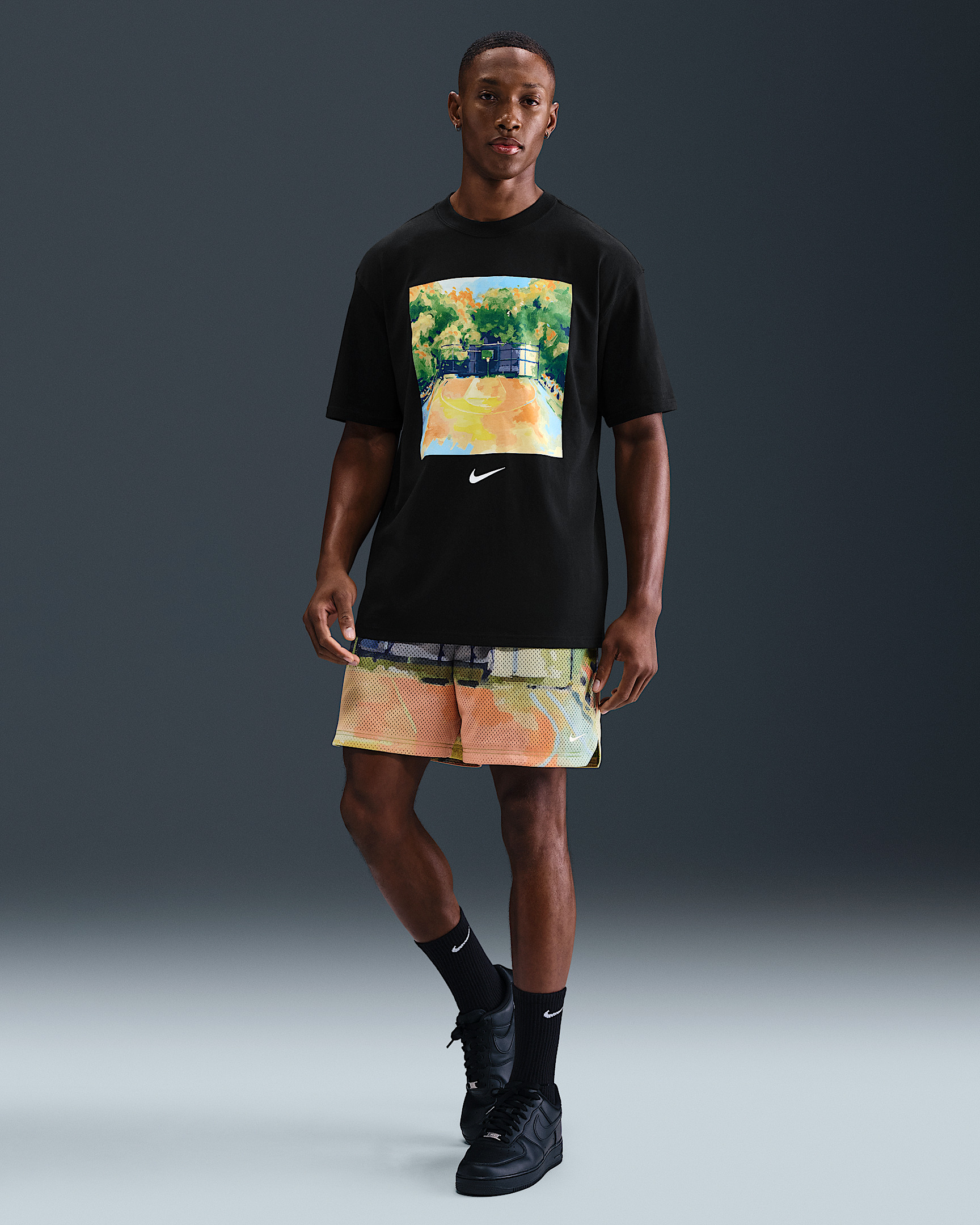 These lightweight mesh basketball shorts tap into the artistry of the game. Nike Dri-FIT technology moves sweat away from your skin for quicker evaporation, helping you stay dry and comfortable. Product Details - 5" inseam - Elastic waistband with drawcord - Side pockets - Side vents - Body/Lining: 100% polyester - Machine wash - Imported - Shown: Malachite/Pale Ivory - Style: IB1882-365 SIZE & FIT Model is wearing size M and is 5′11″179cm Standard fit: easy and traditional