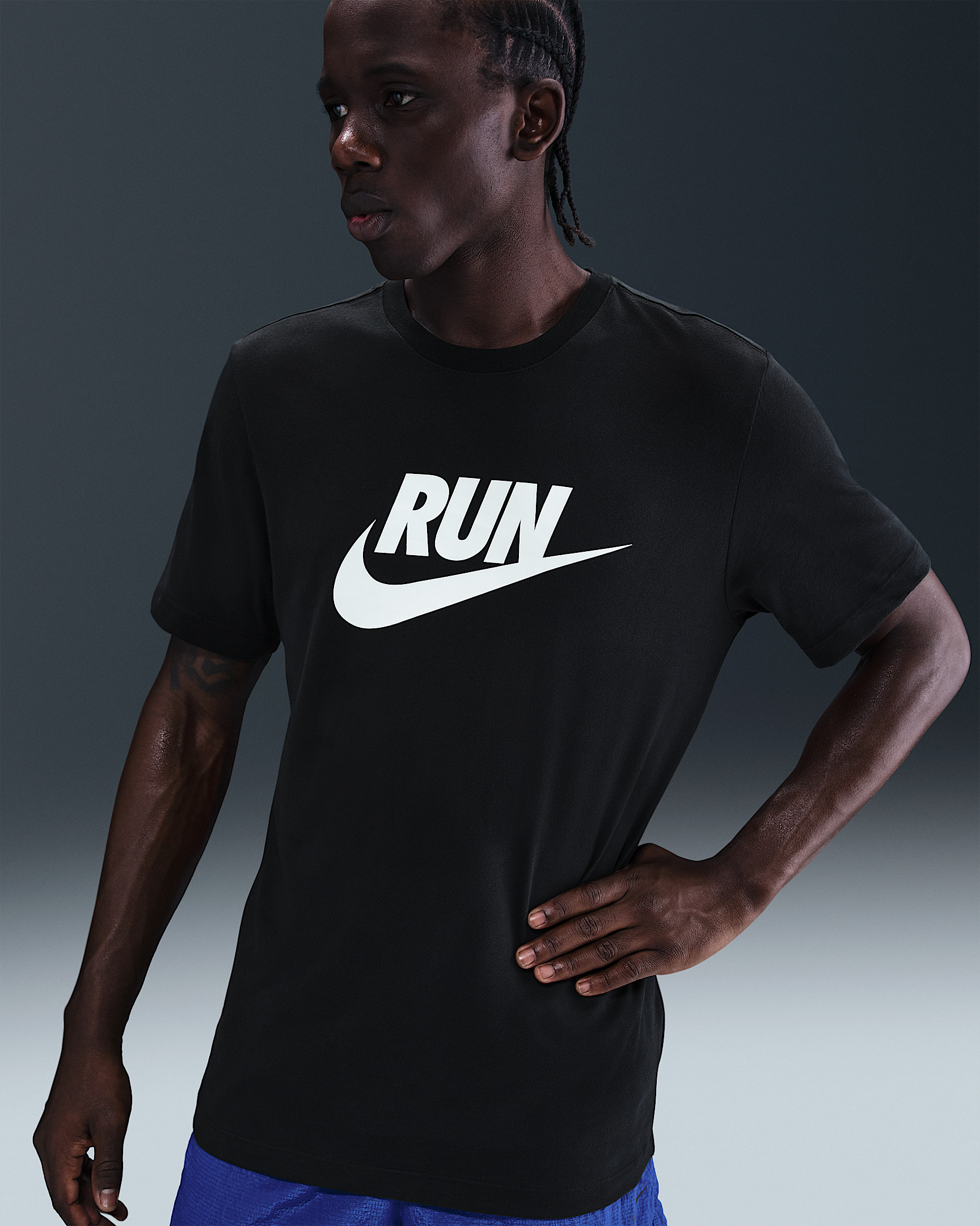 Rack up your miles in this classic-fit tee. Its sweat-wicking cotton blend fabric feels soft and breathable for lightweight comfort. Benefits - Nike Dri-FIT technology moves sweat away from your skin for quicker evaporation, helping you stay dry and comfortable. - Cotton blend fabric feels soft and lightweight. Product Details - 52%-57% cotton/43%-48% polyester - Machine wash - Imported - Material percentages may vary. Check label for actual content. - Shown: Black - Style: IH4238-010 SIZE & FIT Model is wearing size M and is 6′1″185cm Standard fit: easy and traditional