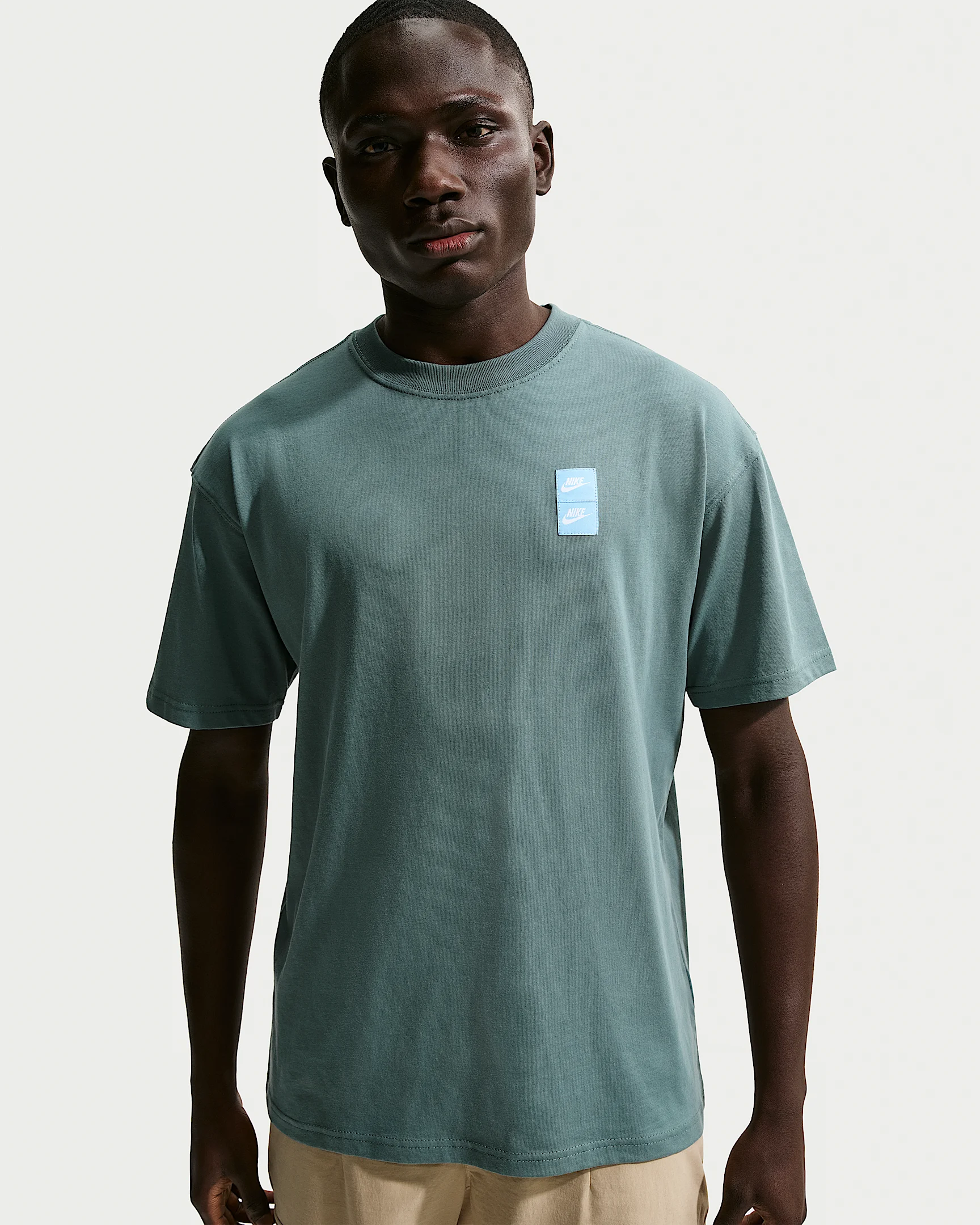 One day before a major in 1986, Nike's first golfer, Seve Ballesteros, improvised a Nike visor by covering the pro shop graphic with two stacked Nike logos. This relaxed fit midweight tee honors his quick thinking and legendary play. Benefits - Midweight cotton fabric feels soft and has a slight drape. - Dropped shoulders, longer sleeves and a roomy fit through the body and hips give the Max90 tee a relaxed and casual look. - The back graphic was Nike's first golf poster. Product Details - Ribbed collar - 100% cotton - Machine wash - Imported - Shown: Mineral Slate - Style: IH2100-382 SIZE & FIT Model is wearing size M and is 6′1″184cm Loose fit: roomy and relaxed