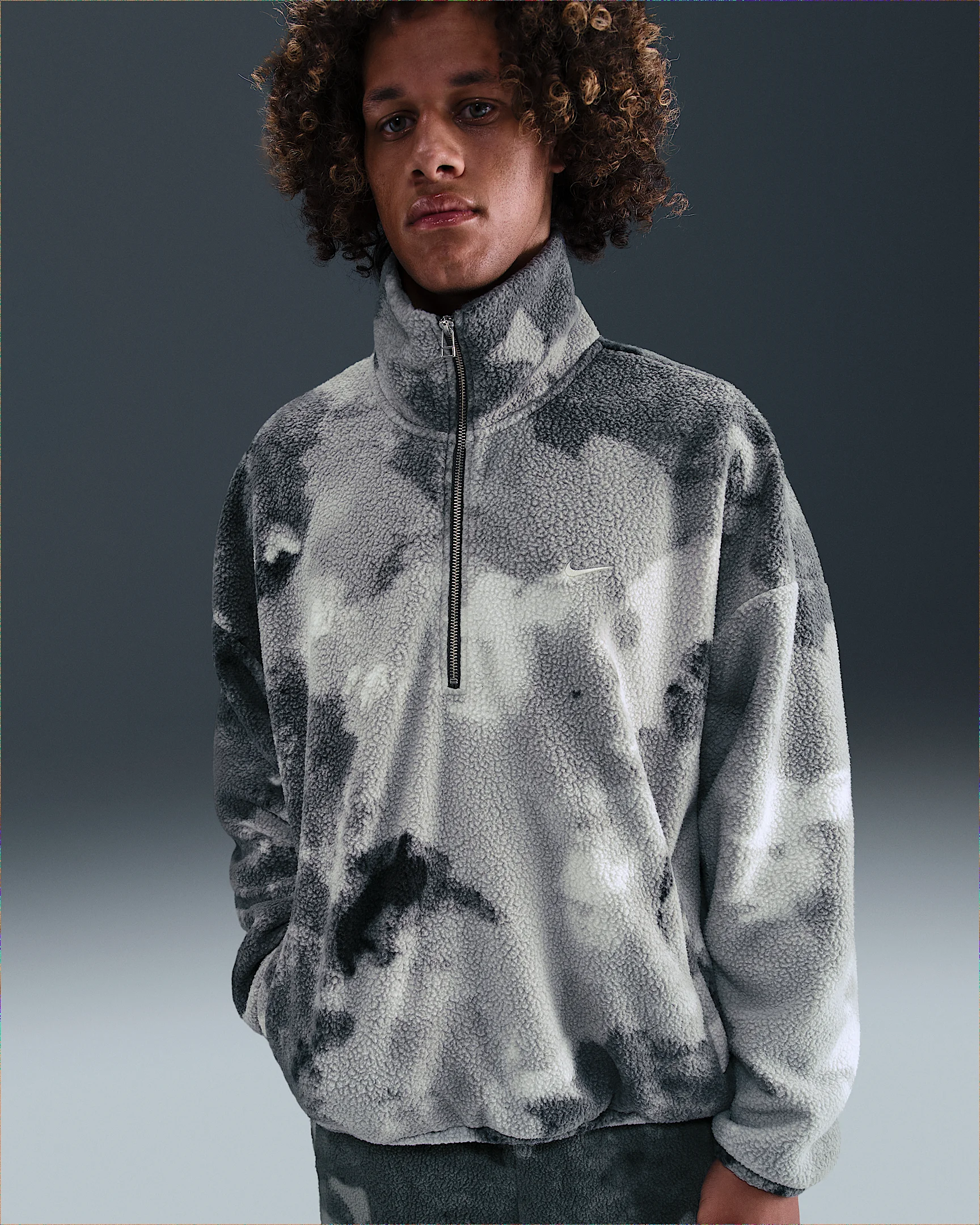 Wanna get some shots up outside? This plush fleece jack soft and warm, thanks to Nike Therma-Fit technology, perfect for a brisk hoops session in the great outdoors when the temperatures dip. Benefits - Nike Therma-FIT technology helps manage your body’s natural heat to help keep you warm in cold-weather conditions. - This plush fleece has a thick, wooly feel that keeps you extra warm and cozy. Product Details - Mesh lining - 1/2-zip design - Zippered pockets - Embroidered Swoosh logo - Faux fur/Lining: 100% polyester - Machine wash - Imported - Shown: Iron Grey/Pale Ivory - Style: HV3541-068 SIZE & FIT Loose fit: roomy and relaxed