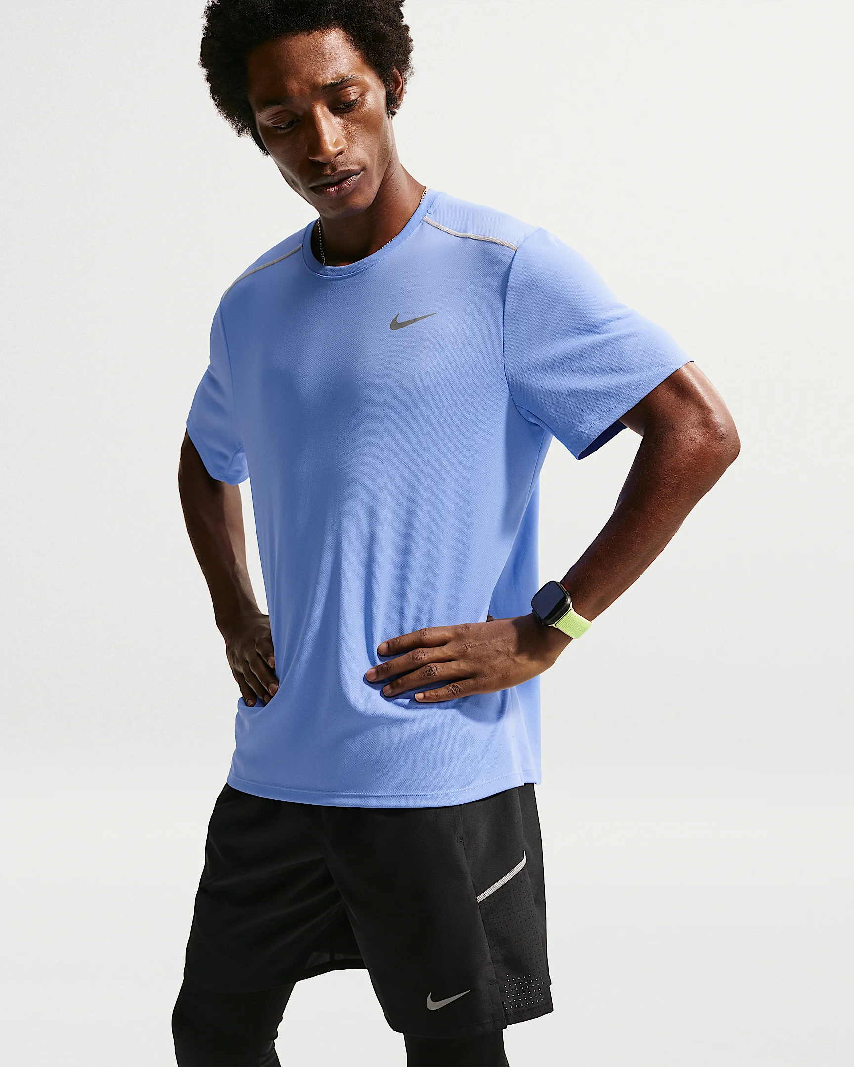 Run without limits. Built with UV protection and our sweat-wicking tech, this lightweight Miler top helps you handle every mile. It’s elevated with the collection’s signature reflective bars to help brighten up your gear. Benefits - Nike Dri-FIT technology moves sweat away from your skin for quicker evaporation, helping you stay dry and comfortable. - Lightweight knit fabric is breathable and comfortable. Product Details - Reflective details - 100% polyester - Machine wash - Imported - Not intended for use as Personal Protective Equipment (PPE) - This product provides UVA and UVB protection from the sun only in the areas covered by the garment. To protect exposed areas, the use of good quality sunscreen is recommended. - Shown: Royal Pulse/Sapphire - Style: IF2082-494 SIZE & FIT Model is wearing size M and is 6′1″185cm Standard fit: easy and traditional