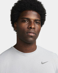 Get those extra miles in with a shirt that holds up to the punishment. Our sweat-wicking Miler Top returns with a longer body and ultra-lightweight fabric, so you get more coverage without the weight. It's cool and breathable, with a relaxed, easy fit that won't slow you down. Plus, UV protection helps add extra coverage from the sun. Benefits - Nike Dri-FIT technology moves sweat away from your skin for quicker evaporation, helping you stay dry and comfortable. - Ultra-lightweight knit fabric has a mesh face and flat back for a cool, smooth sensation. - This product provides UVA and UVB protection from the sun in the areas covered by the garment. Product Details - Reflective Swoosh - "Nike Running" back neck tape - 100% polyester - Machine wash - Imported - Not intended for use as Personal Protective Equipment (PPE) - Shown: Grey Fog/Particle Grey/Heather - Style: DV9315-098 SIZE & FIT Model is wearing size M and is 6′2″188cm Big & Tall model is wearing size 2XL and is 6'1"185cm Standard fit: easy and traditional Fits large; we recommend ordering a size down