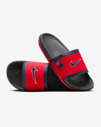 Rep the Boston Red Sox all the way down to your feet in these Offcourt slides. A cushioned synthetic leather strap features your team's logo, while an innovative foam midsole makes this slide so comfy, you’ll never want to take it off. Benefits - Contoured footbed cradles your foot while the dual-density foam adds cushioning and stability. - Soft, plush fabric lines the synthetic leather strap to add comfort. Product Details - Shown: Sport Red/Dark Smoke Grey/Midnight Navy - Style: FN4460-600