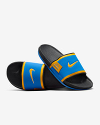 Rep the Los Angeles Chargers all the way down to your feet in these Offcourt slides. A cushioned synthetic leather strap features your team's logo, while an innovative foam midsole makes this slide so comfy, you’ll never want to take it off. Benefits - Contoured footbed cradles your foot while the dual-density foam adds cushioning and stability. - Soft, plush fabric lines the synthetic leather strap to add comfort. Product Details - Shown: Italy Blue/Dark Smoke Grey/University Gold - Style: FN2991-400