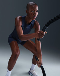 Up for a workout or down to chill, this Nike One Classic tank top is ready for whatever you are. Lightweight, silky-smooth fabric dries quickly and works for wherever your day takes you. A timeless, easy-fitting style and sweat-wicking tech help you feel confident, comfortable and dry from your morning stroll to your evening wind-down—and at all the stops in between. Product Details - 89% polyester/11% spandex - Machine wash - Imported - Reflective logo at center chest - Not intended for use as Personal Protective Equipment (PPE) - This product provides UVA and UVB protection from the sun only in the areas covered by the garment. To protect exposed areas, the use of good quality sunscreen is recommended. - Shown: Midnight Navy/White - Style: FN2808-410 SIZE & FIT Model is wearing size S and is 5′11″180cm Standard fit: easy and traditional