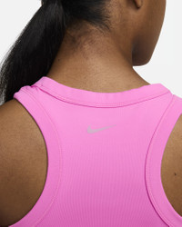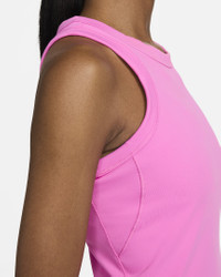 Up for a workout or down to chill, this Nike One Fitted tank top is ready for whatever you are. Midweight, peachy-soft fabric stretches with your every move and dries quickly. Slightly cropped and snug, it's ready to meet your favorite high-waisted leggings for a head-to-toe look that you can feel confident and comfortable in from your morning stroll to your evening wind-down—and at all the stops in between. More Benefits - Nike Dri-FIT technology moves sweat away from your skin for quicker evaporation, helping you stay dry and comfortable. - High neckline with racerback is designed to cover traditional sports bras. Product Details - 80% polyester/20% spandex - Machine wash - Imported - Reflective heat transfer Swoosh logo at center back - Not intended for use as Personal Protective Equipment (PPE) - Shown: Playful Pink/Black - Style: FN2806-675 SIZE & FIT Tight fit: snug and form-fitting