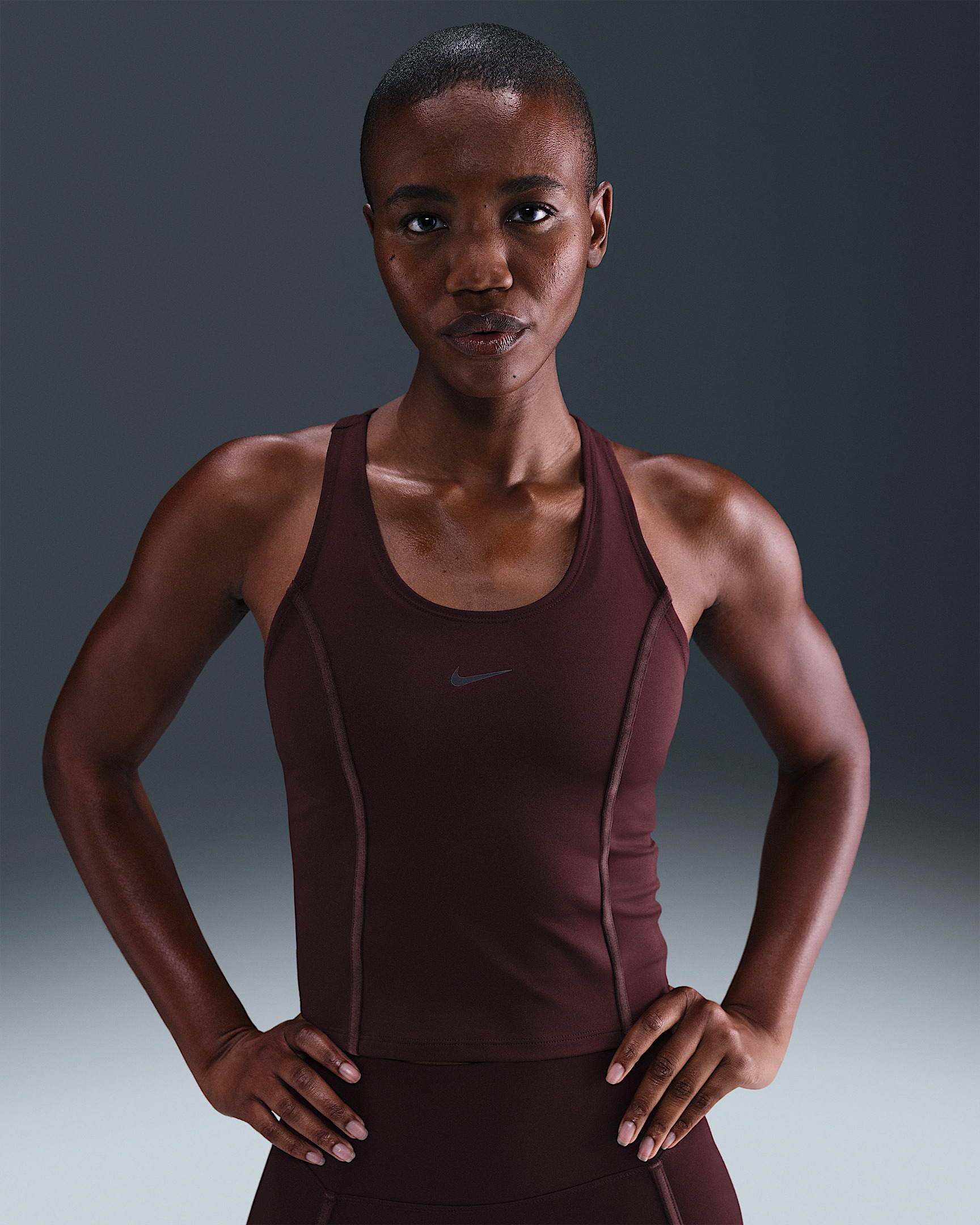 Nike One works for it all. Accented with velvet taping, this midweight, peachy-soft top stretches with you and dries quickly for every activity. Product Details - Swoosh logo - 80% Polyester, 20% spandex - Machine Wash - Imported - Shown: Burgundy Crush/Burgundy Ash - Style: HV9623-652 SIZE & FIT Tight fit: snug and form-fitting
