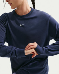 Up for a workout or down to chill, this Nike One Relaxed top is ready for whatever you are. Slightly textured, incredibly lightweight jersey fabric dries quickly and drapes you in comfort that goes with any activity. A loose, roomy fit and extended length help keep you covered and cozy from your morning stroll to your evening wind-down—and at all the stops in between. More Benefits - Nike Dri-FIT technology moves sweat away from your skin for quicker evaporation, helping you stay dry and comfortable. - Curved hem helps keep you covered as you move. Product Details - 81% polyester/13% cotton/6% spandex - Machine wash - Imported - Reflective logo at center back - Not intended for use as Personal Protective Equipment (PPE) - Shown: Midnight Navy/White - Style: FN2817-411 SIZE & FIT Loose fit: roomy and relaxed