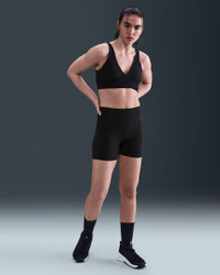 Move easy in this wrap style bra. Its light support provides a gentle hold with plenty of freedom. A sleek breathable liner combines with midweight, peachy-soft fabric that dries quickly and stretches with you. Benefits - Nike Dri-FIT technology moves sweat away from your skin for quicker evaporation, helping you stay dry and comfortable. - Removable pads let you choose your coverage. Product Details - Body/Interlining: 80% polyester/20% spandex. Lining: 88% polyester/12% spandex. Pad top fabric/Pad back fabric: 100% polyester. Pad: 100% polyurethane. - Machine wash - Imported - Shown: Black/Dark Smoke Grey - Style: HQ2813-010 SIZE & FIT Model is wearing size S Model height: 5′7″170cm Model bust: 31″79cm Tight fit: snug and form-fitting Light support: feels ke a soft hug with plenty of freedom