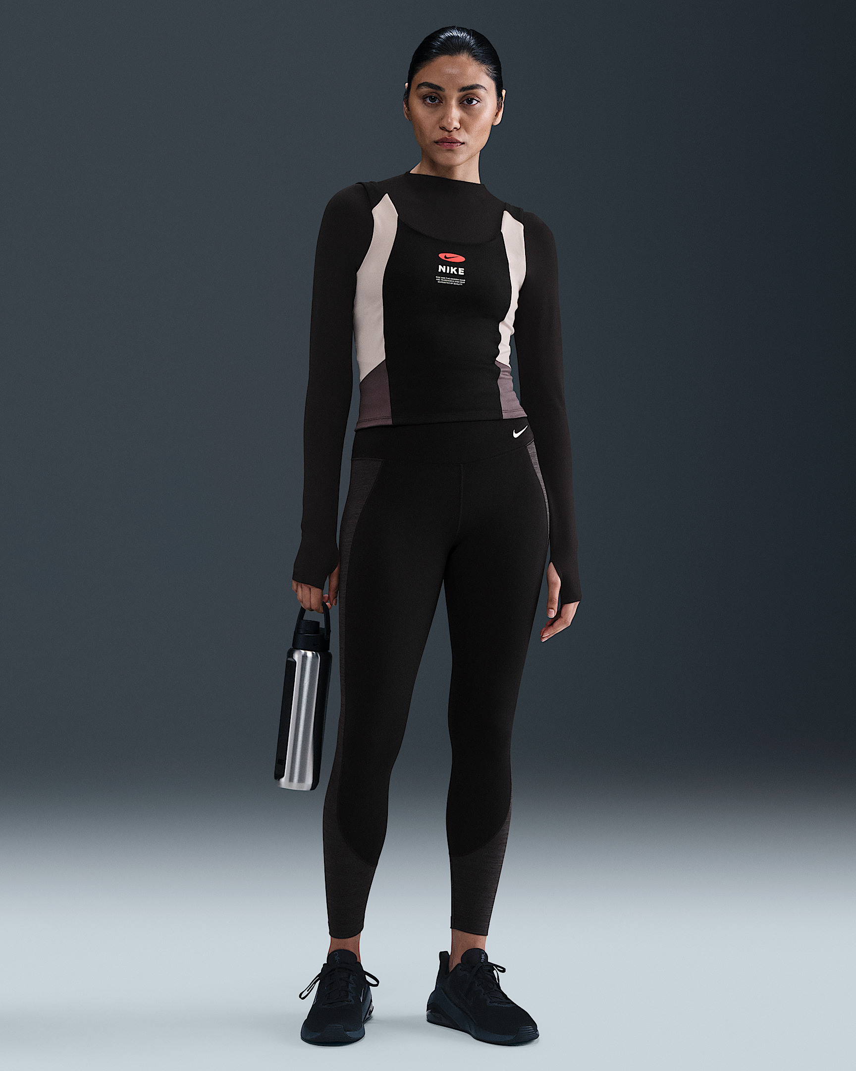 Nike One works for it all. Midweight and peachy-soft, these leggings stretch with your every move and dry quickly for comfort in any activity. Benefits - Nike Dri-FIT technology moves sweat away from your skin for quicker evaporation, helping you stay dry and comfortable. - Back pocket fits most phones. Product Details - Printed Swoosh logo on waistband - Heathered panels - Body/waist lining: 80% polyester/20% spandex. Gusset lining: 100% polyester. - Machine wash - Imported - Shown: Black/Dark Shadow/White - Style: HV2295-010 SIZE & FIT Model is wearing size S and is 5′8″173cm Tight fit: snug and form-fitting Gentle support: feels ke a soft hug with plenty of freedom 78 length: hits at ankle High-Waisted: sits at or above your natural waist for more coverage