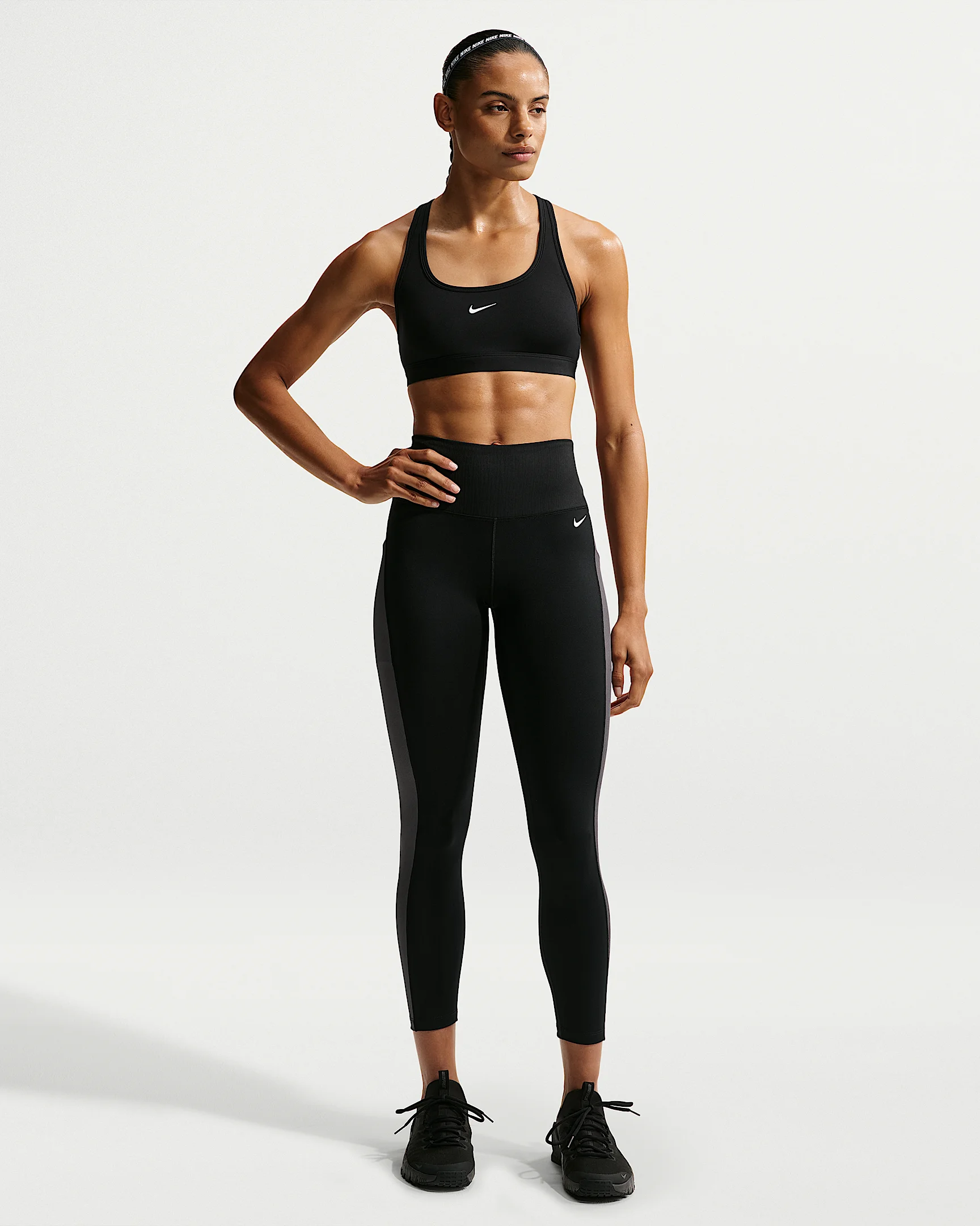 Nike One works for it all. These nonsheer leggings help keep you covered with midweight, peachy-soft fabric that stretches with your every move. Benefits - Nike Dri-FIT technology moves sweat away from your skin for quicker evaporation, helping you stay dry and comfortable. - Midweight, peachy-soft fabric stretches with your every move and dries quickly. - Back pocket fits most phones. Product Details - Ribbed panels - Body: 80% polyester/20% spandex. Gusset lining: 100% polyester. - Machine wash - Imported - Shown: Black/Thunder Grey/White - Style: IB9224-010 SIZE & FIT Model is wearing size S and is 5′10″178cm Tight fit: snug and form-fitting 78 length: hits at ankle High-Waisted: sits at or above your natural waist for more coverage