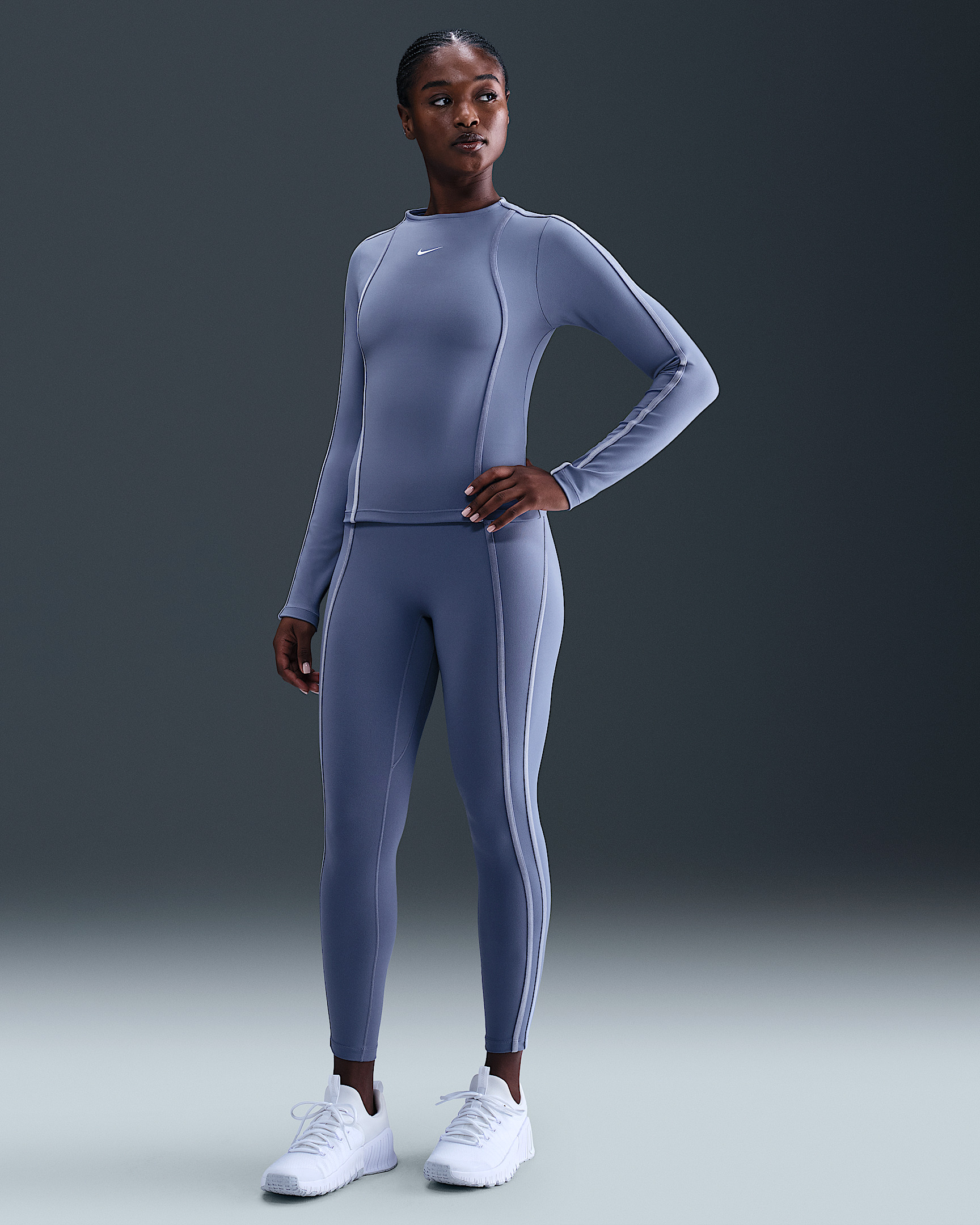 Nike One works for it all. Midweight and peachy soft, these leggings stretch with your every move and dry quickly. Nonsheer with a high waist, they help keep your butt covered no matter how deep you bend. Benefits - Nike Dri-FIT technology moves sweat away from your skin for quicker evaporation, helping you stay dry and comfortable. - Absence of a front seam helps keep the fabric from riding up for a smooth fit. - Back pocket fits most phones. Product Details - Swoosh logo - Body: 80% Polyester, 20% spandex; Waist Lining: 80% Polyester, 20% spandex; Gusset Lining: 100% Polyester - Machine Wash - Imported - Shown: World Indigo/Work Blue - Style: HV2478-499 SIZE & FIT Model is wearing size S and is 5′8″173cm Tight fit: snug and form-fitting Gentle support: feels ke a soft hug with plenty of freedom 78 length: hits at ankle High-Waisted: sits at or above your natural waist for more coverage