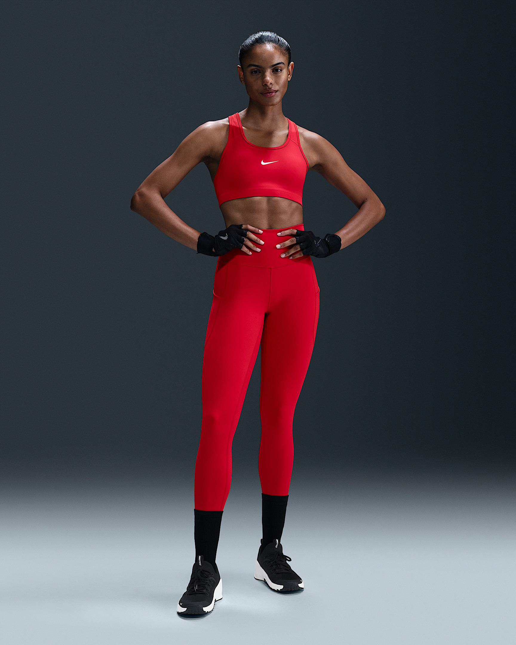 Up for a workout or down to chill, these leggings are the Ones that are ready for whatever you are. Their midweight, peachy-soft fabric stretches with your every move and dries quickly. Plus, a high waist is designed to meet your favorite cropped tops for a head-to-toe look that you can feel confident and comfortable in all day long. Product Details - Body: 80% polyester/20% spandex. Gusset lining: 100% polyester. - Machine wash - Imported - Not intended for use as Personal Protective Equipment (PPE) - Shown: University Red/Black - Style: FN3241-657 SIZE & FIT Model is wearing size S and is 5′10″178cm Tight fit: snug and form-fitting Gentle support: feels ke a soft hug with plenty of freedom 78 length: hits at ankle High-Waisted: sits at or above your natural waist for more coverage