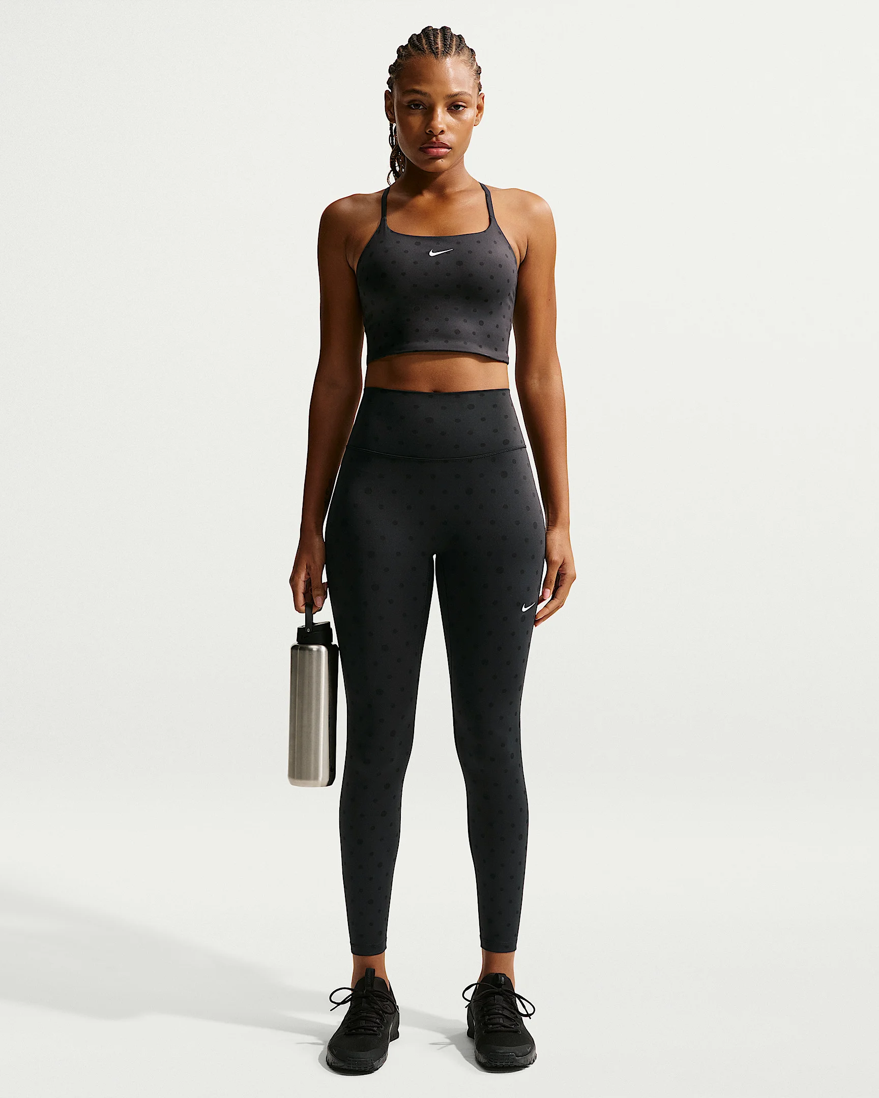 Nike One works for it all. These nonsheer leggings help keep you covered with midweight, peachy-soft fabric that stretches with your every move. Benefits - Nike Dri-FIT technology moves sweat away from your skin for quicker evaporation, helping you stay dry and comfortable. - Midweight, peachy-soft fabric stretches with your every move and dries quickly. - Absence of a front seam helps keep the fabric from riding up for a smooth fit. - Back pocket fits most phones. Product Details - Body/Waist lining: 80% polyester/20% spandex - Machine wash - Imported - Shown: Black/Black/White - Style: IQ0334-010 SIZE & FIT Model is wearing size S and is 5′11″179cm Tight fit: snug and form-fitting Gentle support: feels ke a soft hug with plenty of freedom 78 length: hits at ankle High-Waisted: sits at or above your natural waist for more coverage