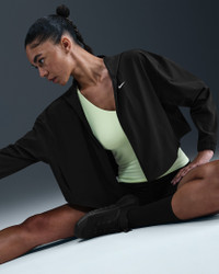Nike One works for it all. Lightweight and flowy, this spacious jacket has a water-repellent finish and plenty of stretch for coverage and comfort through every activity. Benefits - Water-repellent finish helps keep you dry in wet weather. - Mesh pocket bags help keep moisture off your essentials. Product Details - Front hand pockets - Full-zip design - Elastic at cuffs - Swoosh logo at left chest - Body: 85% polyester/15% spandex. Mesh: 100% polyester. - Machine wash - Imported - Shown: Black/White - Style: IH8600-010 SIZE & FIT Model is wearing size S and is 5'9"175cm Oversized fit: exaggerated and spacious