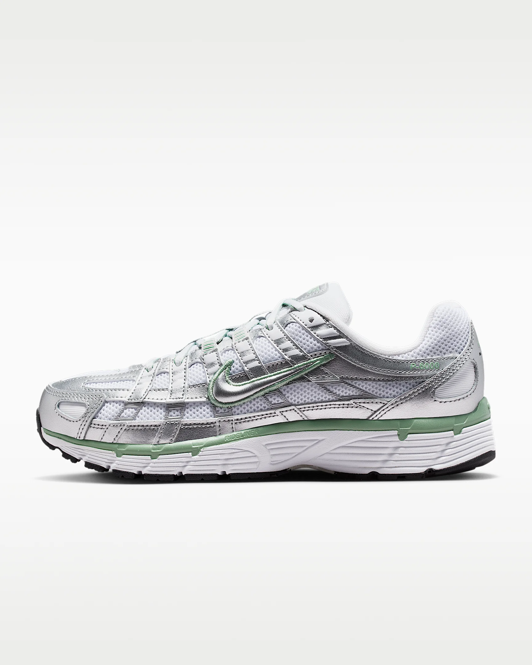 A mash-up of Pegasus' past, the Nike P-6000 features breathable mesh with horizontal and vertical overlays for a 2000s running look that is as striking as, say, a majestic winged horse. Drawing on the design of the Nike Pegasus 25 and 2006, its running aesthetic meets all-day comfort for the streets. Benefits - Leather, textile and synthetic upper gives comfortable support. - Design draws on the Nike Pegasus 25 and Nike Pegasus 2006. - Foam midsole provides lightweight cushioning. - Cushioned sockliner delivers a comfortable underfoot feel. - Rubber outsole gives durable traction. Product Details - Shown: Metallic Silver/White/Black/Steam - Style: BV1021-017
