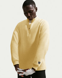 Take colder temps in stride with the help of this versatile golf layer. Its smooth fleece and Therma-FIT tech offers comfortable warmth that won't weigh you down or get in the way. Benefits - Nike Therma-FIT technology helps manage your body’s natural heat to help keep you warm in cold-weather conditions. - Piping detail on the shoulder seam provides a clean look that ties back to the rest of the Par Collection. - Stretchy, ribbed cuffs provide a snug, locked in feel while a zipper guard at the collar provides a distraction-free fit. Product Details - Midweight fleece - 1/2-zip design - Ribbed collar and cuffs - Embroidered Nike Golf shield logo - 77% polyester/21% cotton/2% spandex - Machine wash - Imported - Shown: Soft Yellow/White/Soft Yellow/Black - Style: IB0303-722 SIZE & FIT Model is wearing size M and is 6′1″184cm Standard fit: easy and traditional