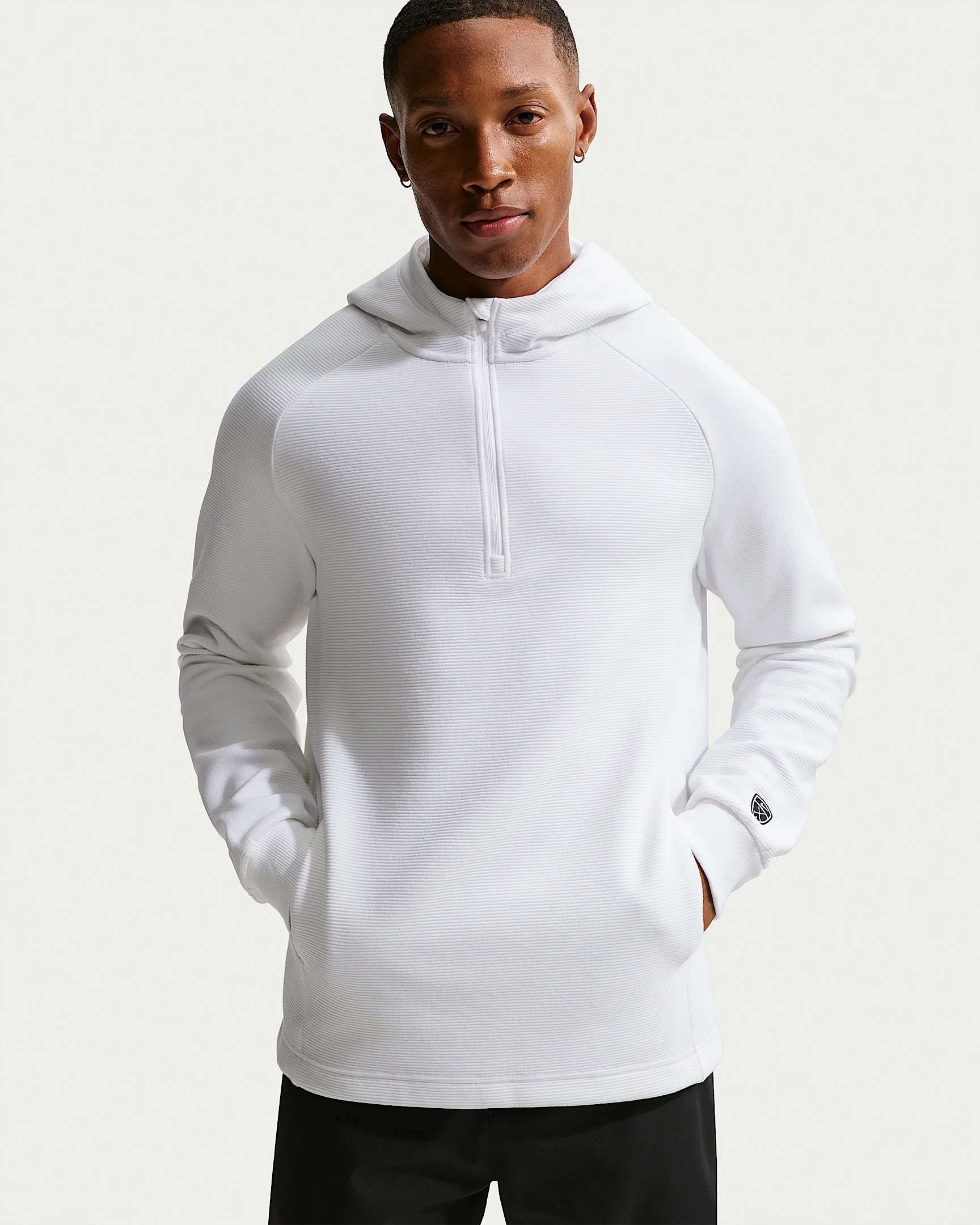 Get after early starts and lower temps with this lightweight fleece hoodie. A subtle ribbed texture and Therma-FIT tech give it a clean look and versatile warmth that won't weigh you down or get in the way. Benefits - Nike Therma-FIT technology helps manage your body’s natural heat to help keep you warm in cold-weather conditions. - Piping detail on the shoulder seam provides a clean look that ties back to the rest of the Par Collection. - Stretchy, ribbed cuffs provide a snug, locked in feel while a zipper guard at the collar provides a clean, distraction-free fit. Product Details - Heathered spacer knit material with stretch - This product provides UVA and UVB protection from the sun only in the areas covered by the garment. To protect exposed areas, the use of good quality sunscreen is recommended. - Front pouch pocket - 1/2-zip design - Ribbed cuffs - Embroidered Nike Golf shield logo - Body: 77% polyester/21% cotton/2% spandex. Pockets: 100% polyester. Hood lining: 100% polyester. - Machine wash - Imported - Shown: White/White/White/Black - Style: IB0294-100 SIZE & FIT Model is wearing size M and is 5′11″179cm Standard fit: easy and traditional