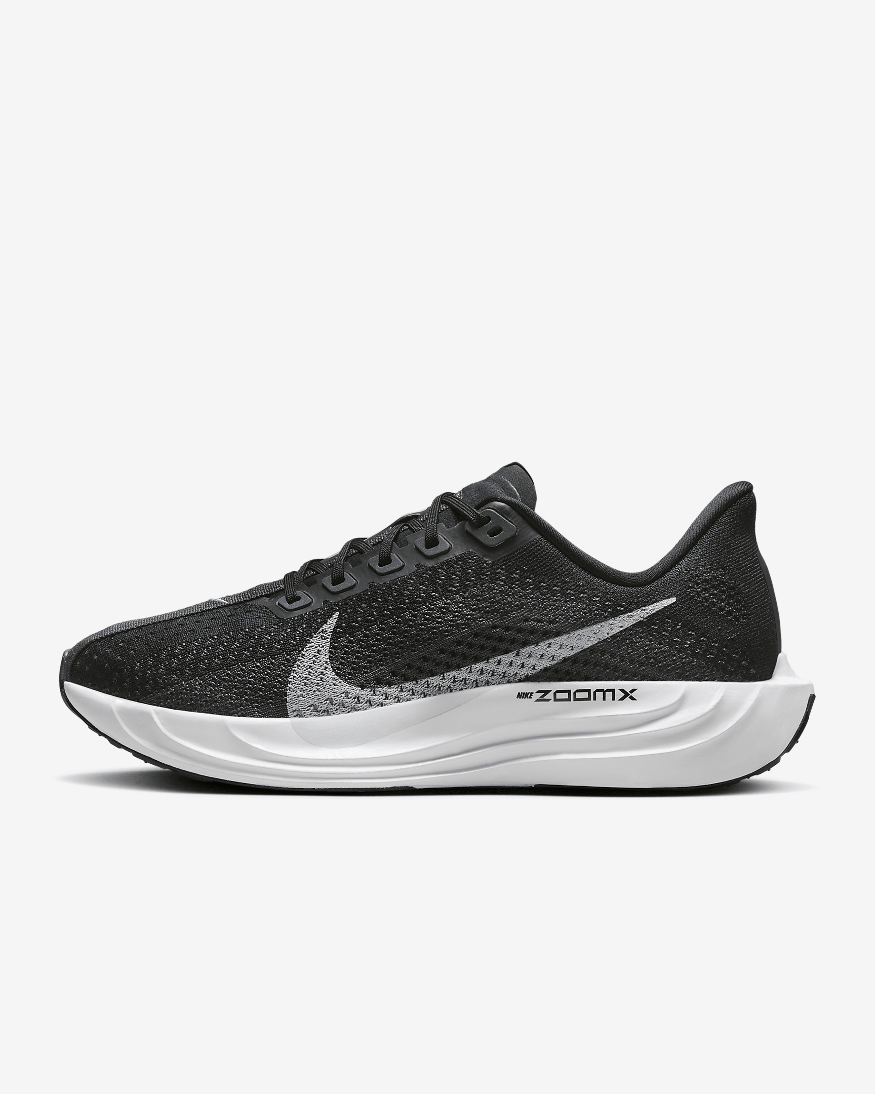 Responsive cushioning in the Pegasus provides an energized ride for everyday road running. Experience the highest energy return compared to previous Pegasus Turbos with a ZoomX foam midsole. Plus, stretchy Flyknit on the upper conforms to your foot for a seamless fit. Benefits - Flyknit on upper has perforations to help reduce the weight of the shoe and make it more breathable. - ZoomX foam midsole offers springy cushioning. - High-abrasion rubber on outsole provides traction. - Midfoot band helps keep you contained. Product Details - Weight: Approx. 205 g/7.2 oz (Women’s US 8) - Heel-to-toe drop: 10 mm - Not intended for use as Personal Protective Equipment (PPE) - Shown: Black/Anthracite/White/Pure Platinum - Style: FQ7261-002