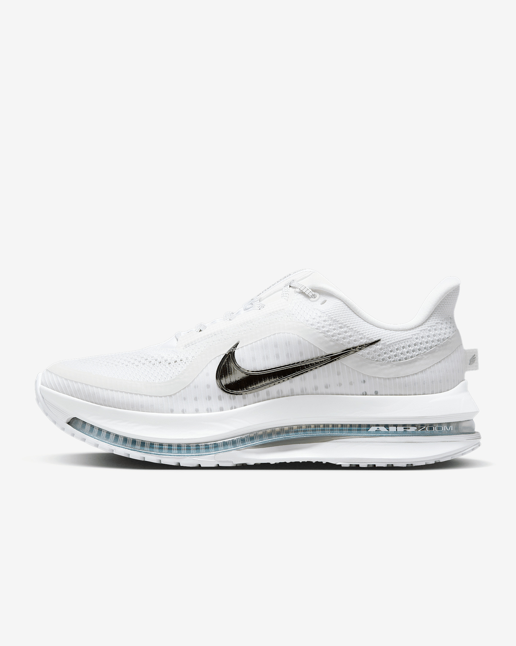 The Pegasus Premium supercharges responsive cushioning with a triple stack of our most powerful running technologies: ZoomX foam, a sculpted Air Zoom unit and ReactX foam. It’s the most responsive Pegasus ever, providing high energy return unlike any other. With a lighter-than-air upper, it decreases weight and increases breathability so you can fly faster. Product Details - Weight: Approx. 325g/11.5oz (Men’s US 10) - Heel-to-toe drop: 10mm - Not intended for use as Personal Protective Equipment (PPE) - Shown: White/Metallic Silver/Metallic Silver - Style: HQ2592-102