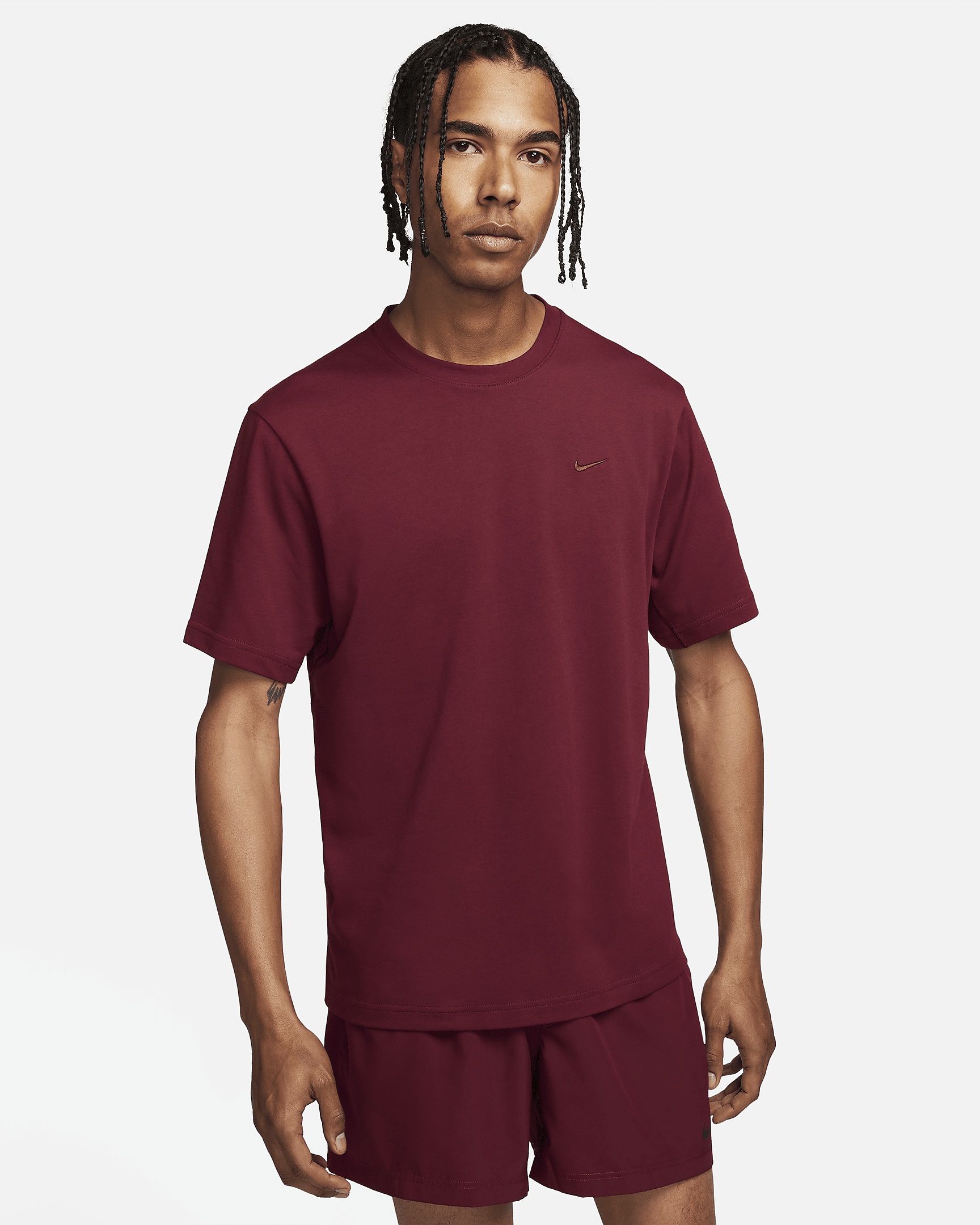 Run, spin, lift, stretch—no matter where your workout takes you, we have you covered in the sweat-wicking Primary Top. We designed it to be soft and comfortable, with underarm ventilation to help keep you cool during your reps. Benefits - Nike Dri-FIT technology moves sweat away from your skin for quicker evaporation, helping you stay dry and comfortable. - Knit fabric feels buttery soft. - Embroidered underarm eyelets help increase ventilation to keep you cool. - Underarm gusset increases mobility in a high-friction area. Product Details - Embroidered Swoosh - Ribbed neckband - 60-62% cotton/38-40% polyester - Material percentages may vary. Check label for actual content. - Machine wash - Imported - Shown: Dark Team Red/Dark Team Red - Style: DV9831-619 SIZE & FIT Model is wearing size M and is 6′2″188cm Big & Tall model is wearing size 3XL and is 6'5"196cm Standard fit: easy and traditional
